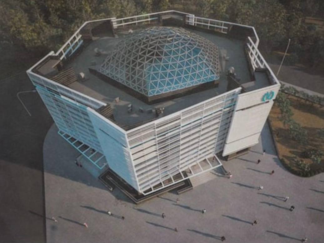 Идёт армирование обвязочной балки для будущего стеклянного купола, который будет накрывать атриум внутри здания занимающий центральное пространство 4-5 этажей.