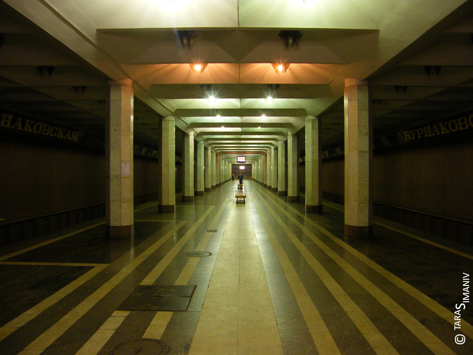 Канавинская вообще понравилась меньше всего: потолок, покрытый краской желтого и розового цветов, лампы разного спектра, частично отключенные и отсутствие декоративных элементов.