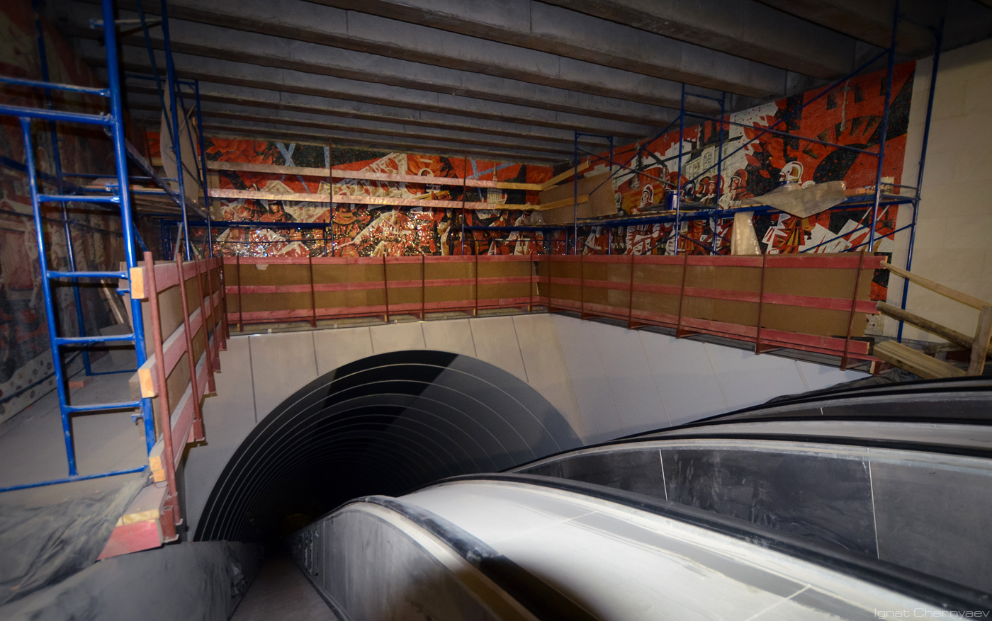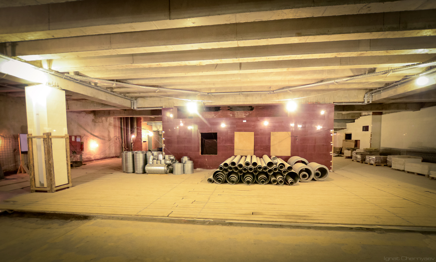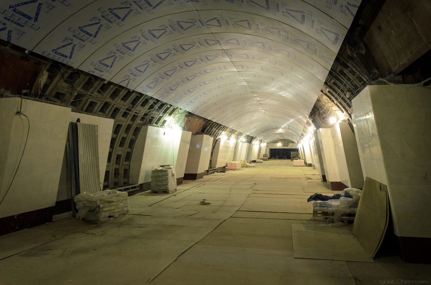 Что внутри не в теме, но сегодня проезжал мимо западного входа в северный подземный переход к ст.метро пр. Славы. Заметил кран, бетономешалку и экскаватор. Все активно работали.