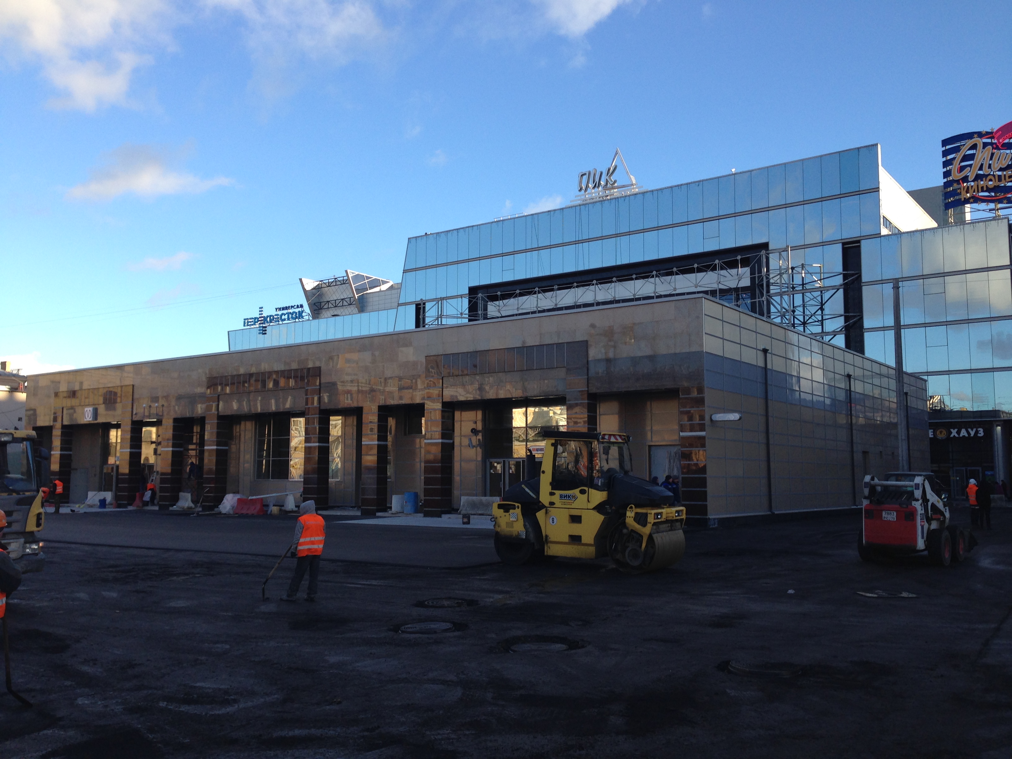 Ограждения убраны. Проход вокруг вестибюля открыт. Вешали шарики. Под землёй тоже убрали ограду.