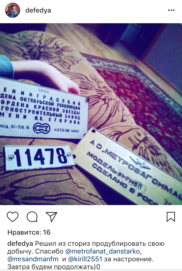 здравствуйте, а кто разрешал распространение фотографий без моего согласия? А с чего ты взял, что шильд с 9050 скрутил я? А с чего ты неудосужился мне написать лично, а на каком-то форуме сливаешь фотки? А?andreev писал(а):Петербургскому метрополитену на заметку. Тело активно скручивает таблички с вагонов.