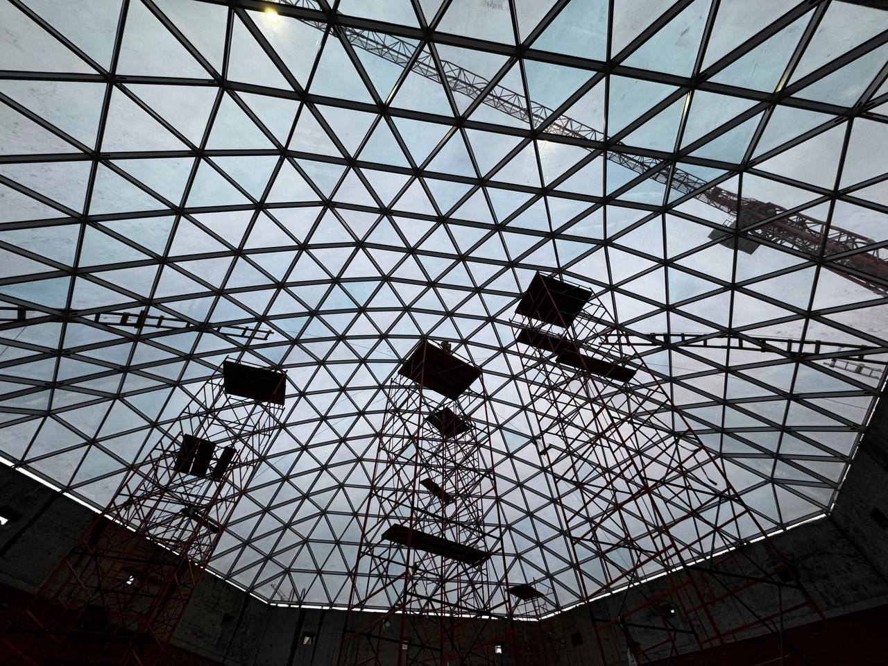 Завершено остекление купола.