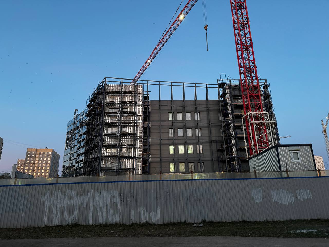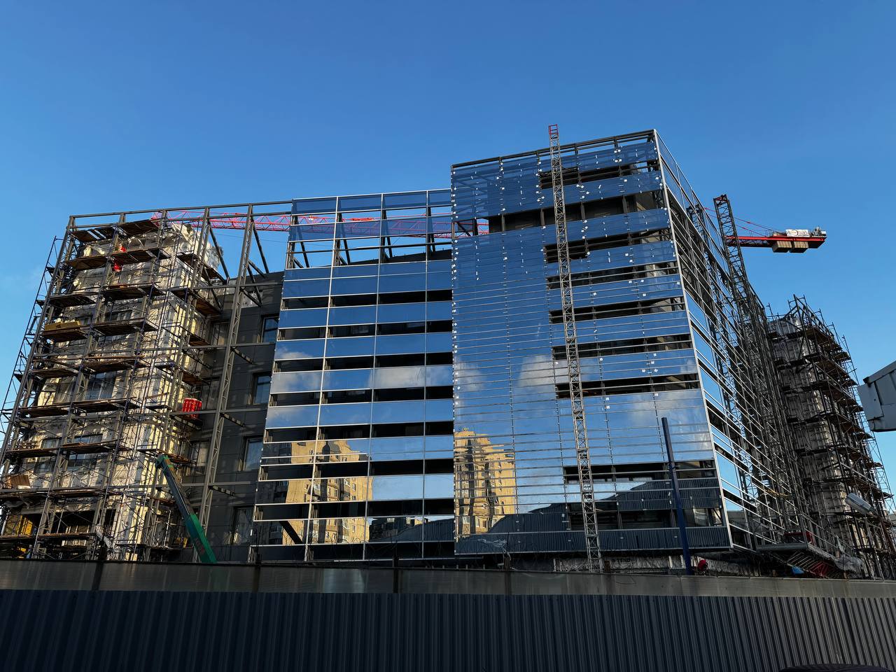 Продолжаются работы по монтажу вентилируемого фасада, фальш-фасада.