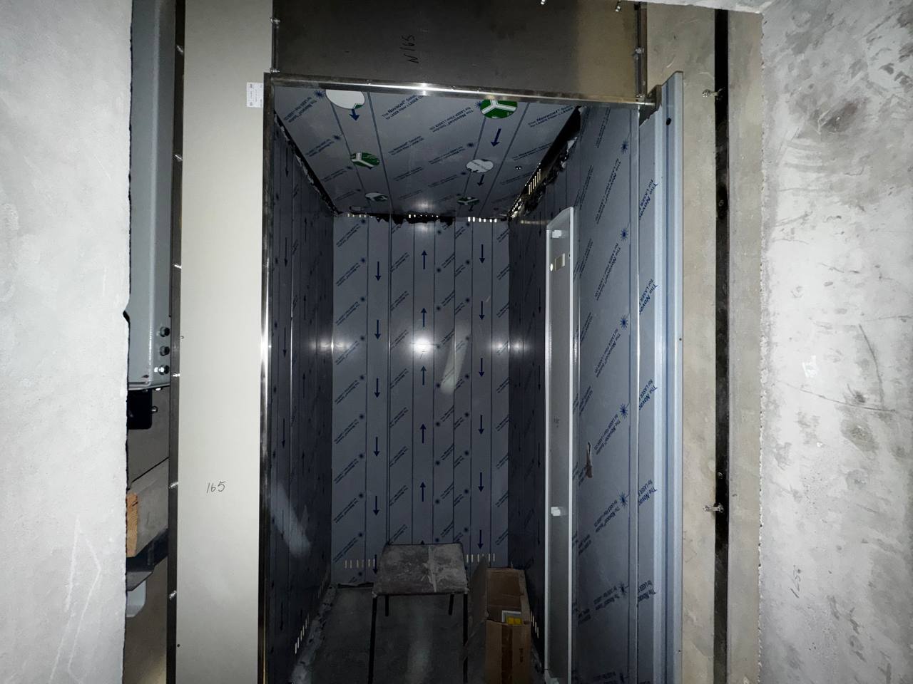 Монтаж кабины одного из трёх лифтов в инженерном центре метрополитена вестибюля станции ЮЗ.