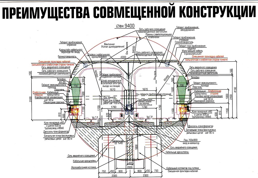 Канала в лотке тоннеля не будет. Жесткое основание заливается до уровня путевого бетона и имеет высоту порядка 2-2,5 метров (сколько точно - не помню).