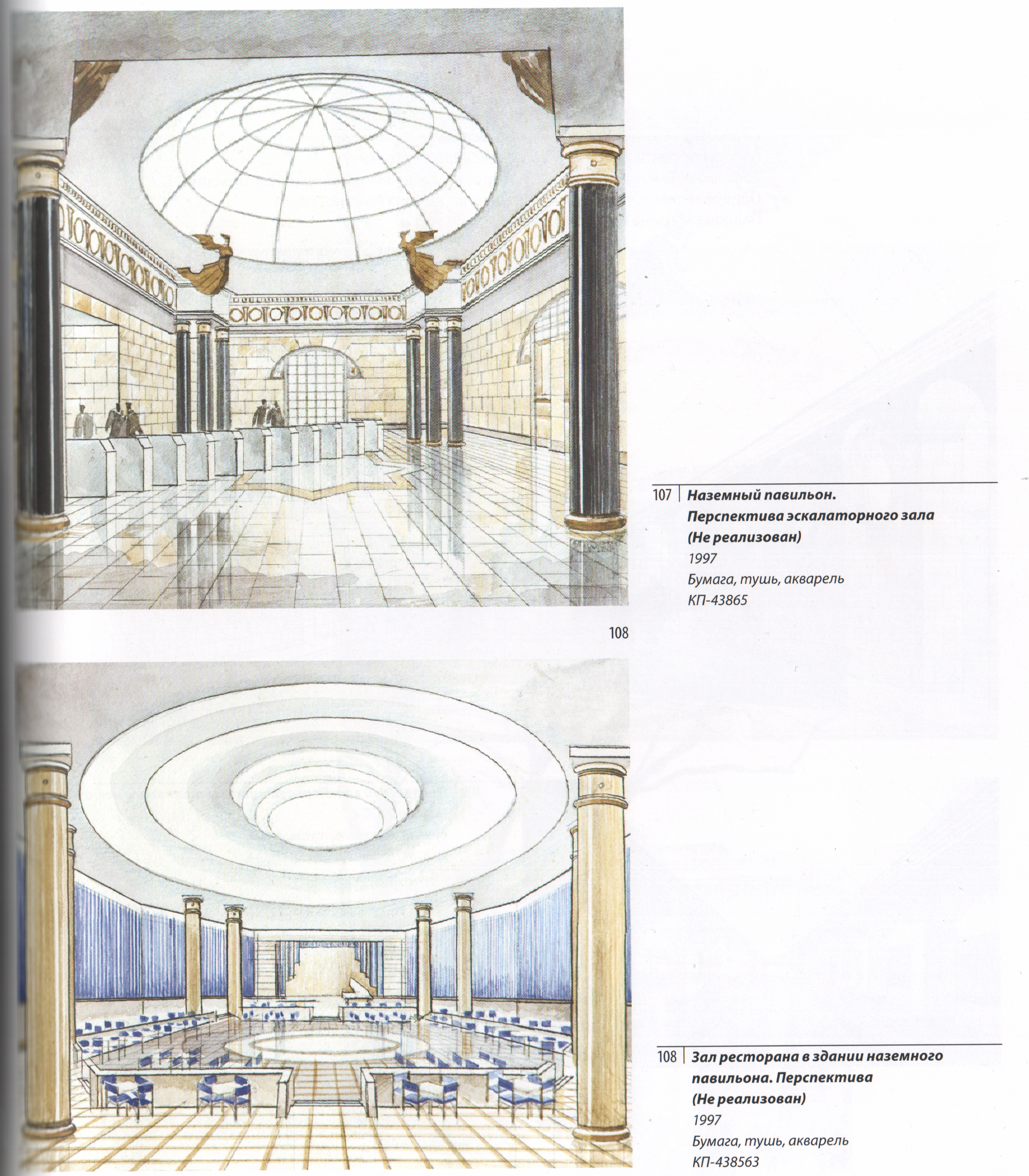 В руки мне попал переизданный в 2013-ом альбом «Петербургский метрополитен: из прошлого в будущее», выпущенный изначально в 2005 году к юбилею ПМ (именно из него и взяты эскизы в самых первых постах). Второе издание стало полнее. Из представленных здесь рисунков я повторю лишь те, которые были в чёрно-белом виде в этой теме (допускаю повторы в пределах форума). Если вдруг кому понадобится какой-то другой, пишите, с радостью отсканирую