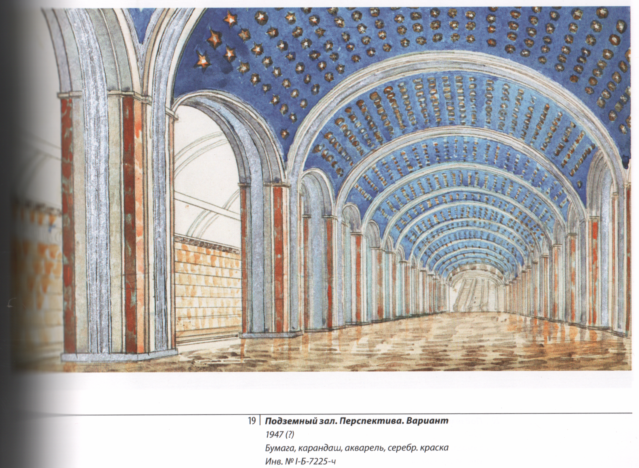 Прежде вроде бы нигде здесь не мелькавший эскиз оформления станции метро «Площадь Ленина». Я в восторге от этого варианта! Разом все остальные собой затмил! :Yahoo!: