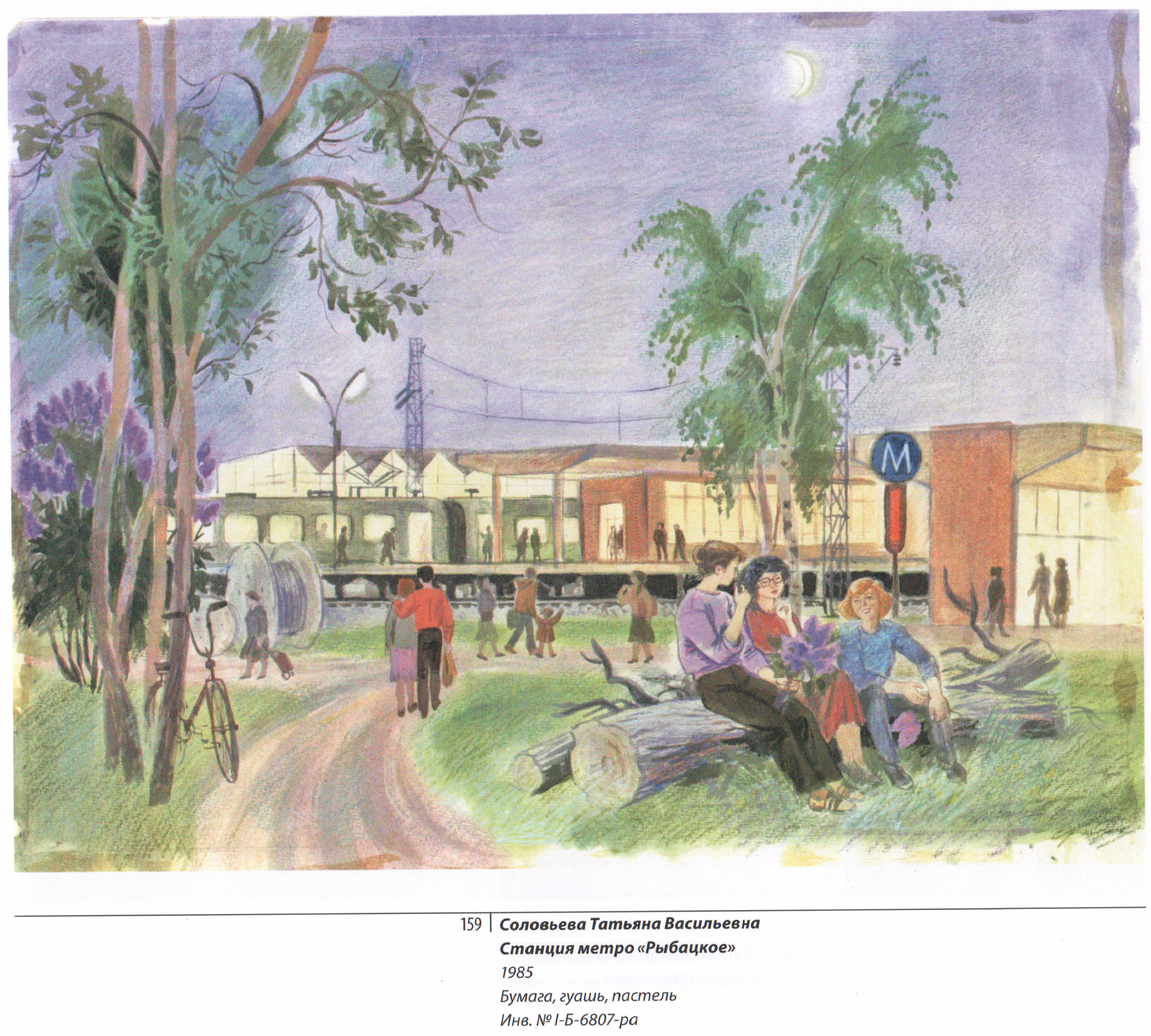 А теперь бонусы! Живопись — чтобы не разбрасывать по темам, выложу здесь самые интересные на мой взгляд репродукции картин из всё того же альбома (их там много, есть и конкретные станции, и просто сюжеты из жизни и строительства метро — так что спрашивайте, охотно расскажу и покажу что-нибудь ещё)