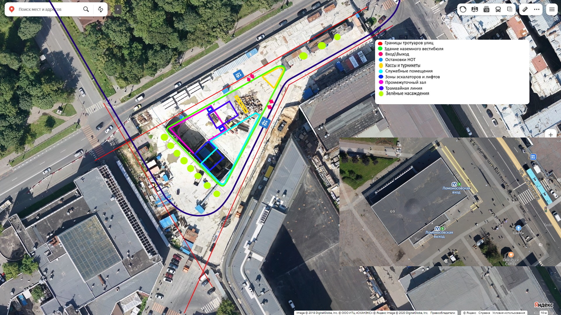 Справа внизу прилепил вестибюль Ломоносовской в том же масштабе для понимания площади вестибюля.
