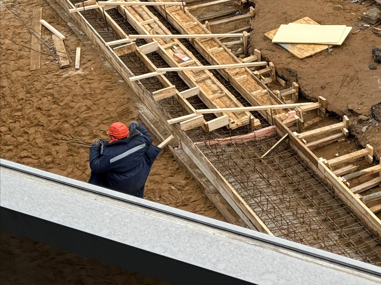 На бывшей парковке у Окея, которая имела один уровень, создают лестницу) иначе коммуникации не помещаются.