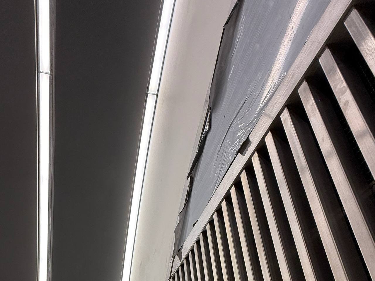 Установка потолка над эскалаторами.