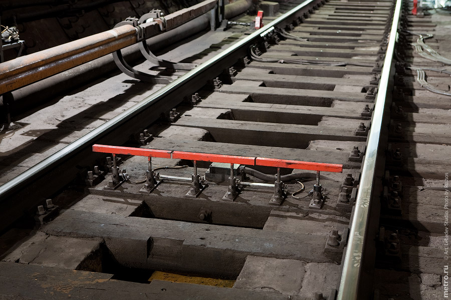 Это в районе конечных станций такие «лепестки» между рельсами, контролирующие, чтобы подвагонное оборудование не выходило за габариты. Выходной светофор на станции содержит доп секцию, которая загорается в случае срабатывания КГУ. В этом случае состав не оборачивается, а сразу отгоняется в депо.