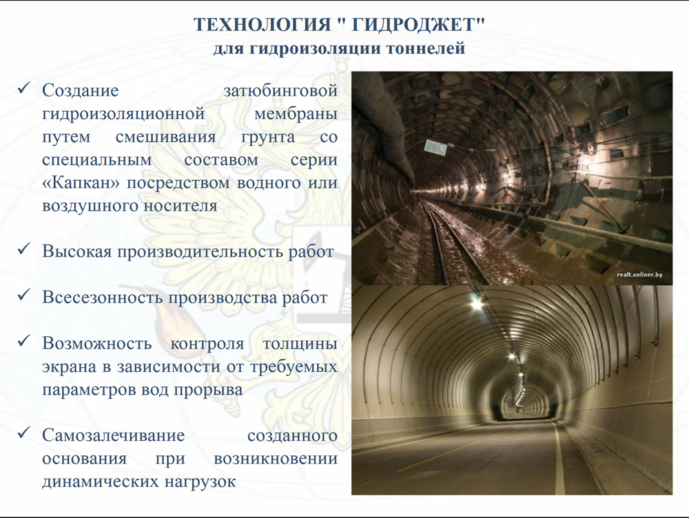 По словам источника, присутствовавшего на совещании в КРТИ, в «Капкан», в том числе, входят такие инновационные элементы, как глина и растительные масла. "Они предлагают не закачивать его в тоннели, а путем инъекций создать вокруг затопленного участка своего рода барьер", – рассказывает собеседник "Фонтанки".
