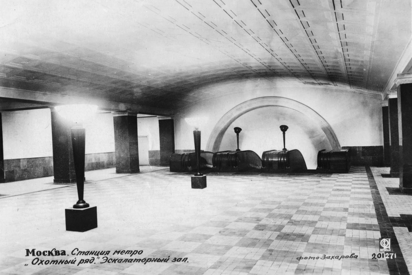 Освещение наклонного хода Московский метрополитен станция "Охотный ряд" при открытии в 1935 году