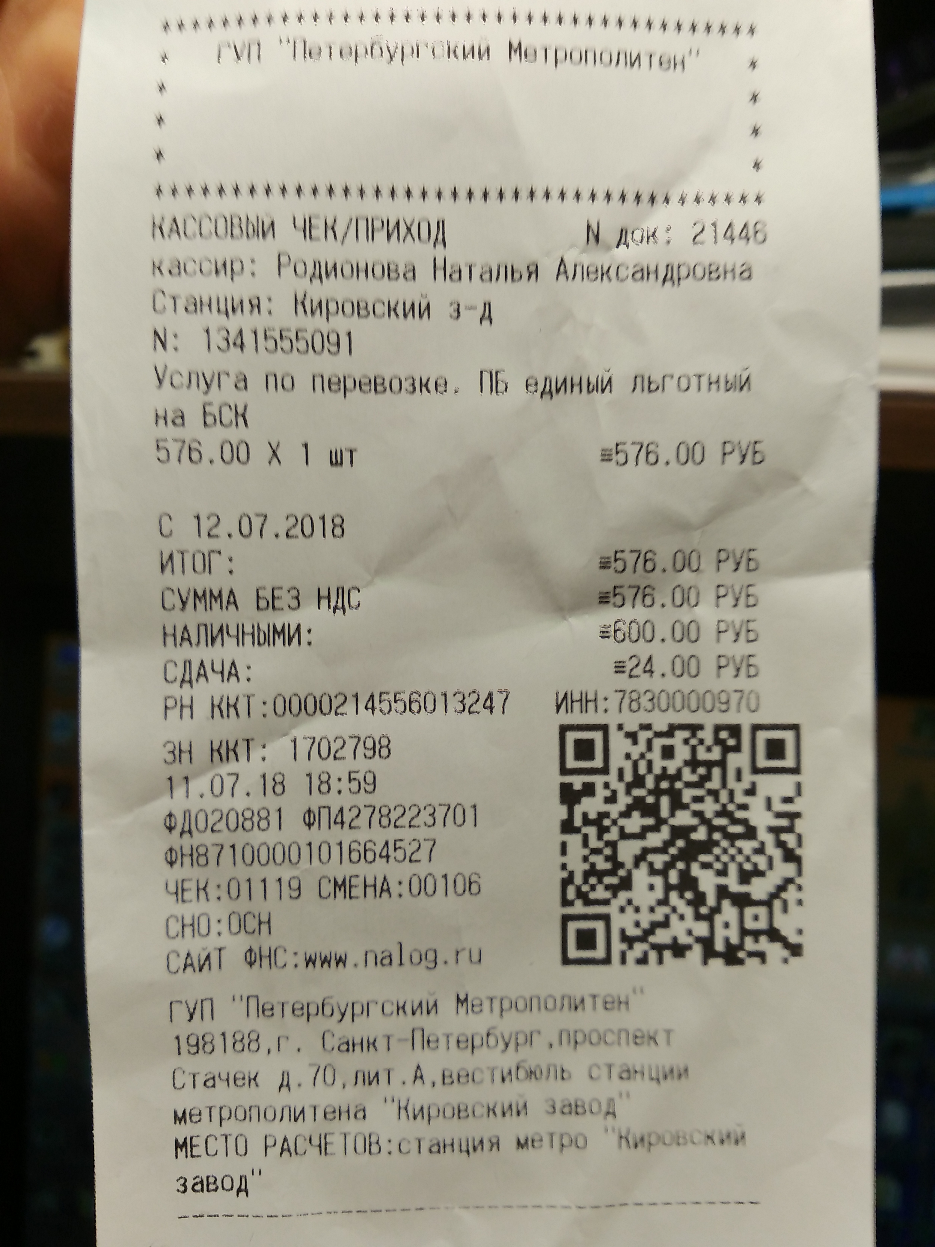 В кассах теперь выдают такие вот чеки на любой проездной, в том числе и на жетон.