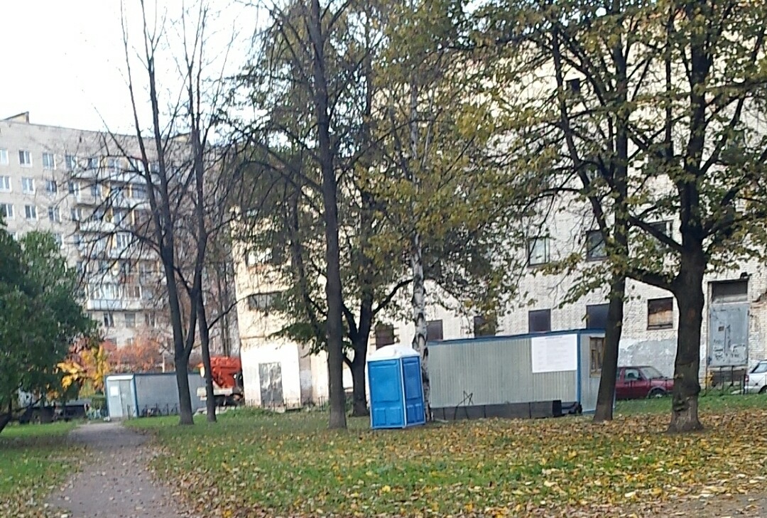 И сегодня заметил перед Прибоем первую бытовку с уже хорошо знакомым информщитом со "сроками прозОВСТВА работ" и колышки по границе участка. Рядом, вне размеченного участка расположена ещё одна бытовка - Ленсвета, производящего капитальный ремонт освещения на ул. Шевченко.