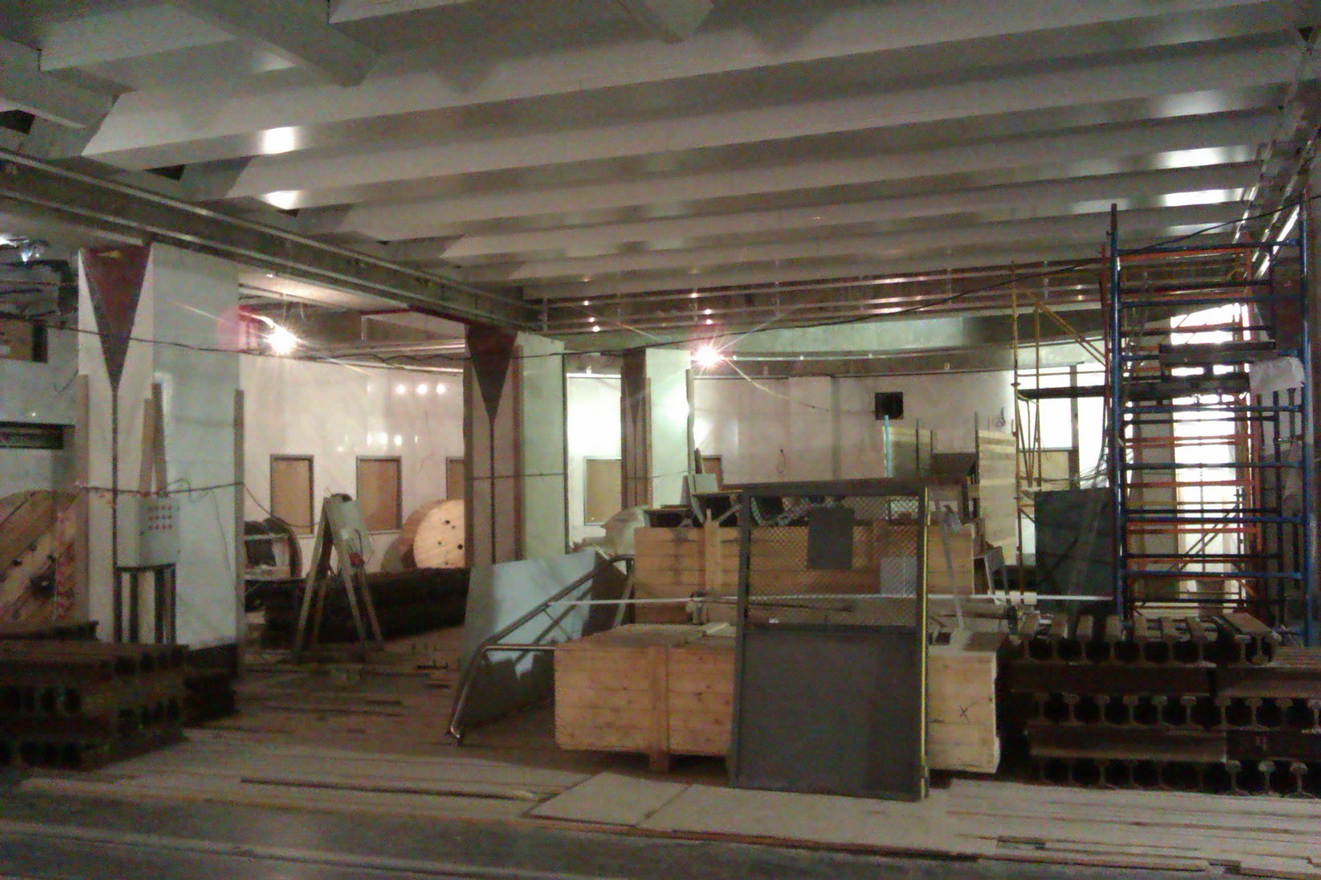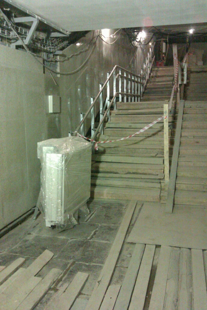 Так-как участок от траволаторов до эскалаторов находится над точкой будущего перегонного тоннеля, то при условии, что переходный тоннель был бы без уклона, наклонный ход можно было бы расположить только не правее оси станции.