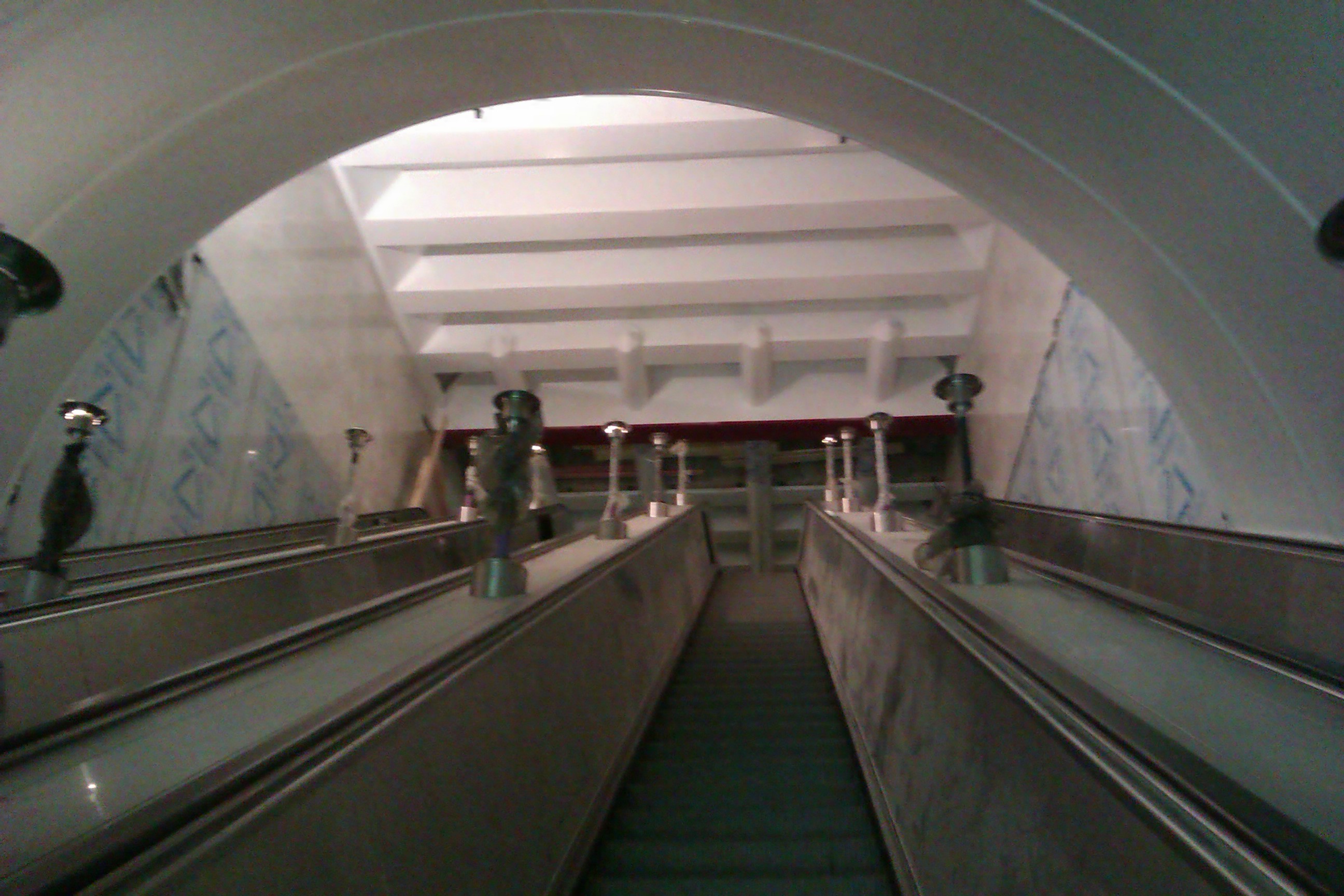 Теперь, касательно, что на спуске стоят "по одному вверх по двое": удивительно, но производительность эскалаторов при этом сопоставима. Дело в том что на спуск стоят через одну ступень + немного бегущих (10-30%), а вверх стоят хоть и в два ряда, но через ДВЕ ступени.