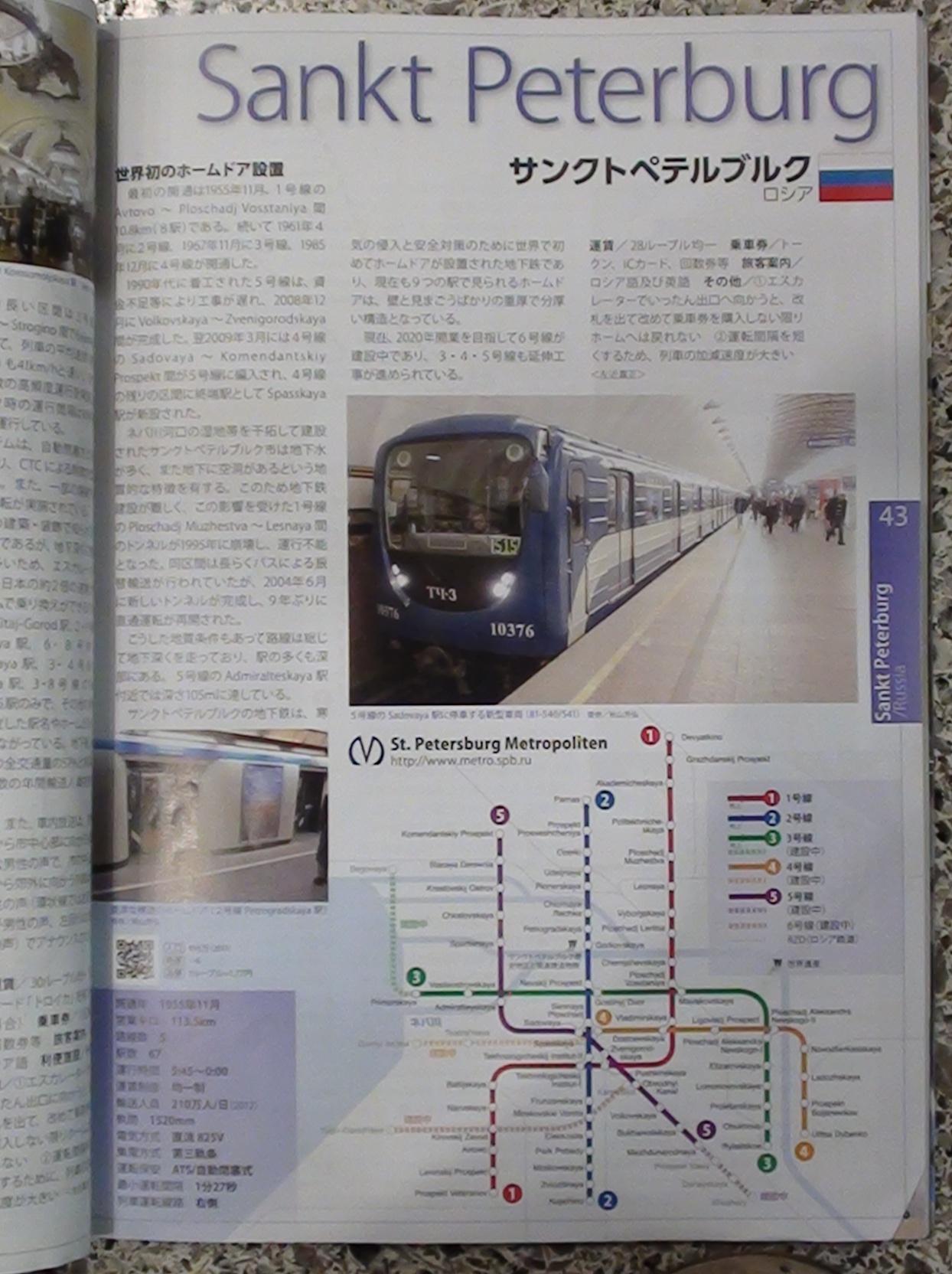 В одной из книжек, которые купил в Токио, на одной из страниц изображён пришелец. Странно, почему для заглавия городского ПС выбран старый тип ПС. Понятно, что это в данный момент основа, во всяком случае, для СПб. Но лучше бы современный тип был. Кроме РФ, в остальных городах в этой же книжке выбран более современный состав (в Москве ещё более древний номерной выбран). Видимо у автора серия номерных ассоциируется с ПС во всей РФ. И не только. Номерные встречаются и в других странах. Увы, там тоже они представленны как основной тип ПС. Про современный тип ни слова. Точнее, ни фотографии...