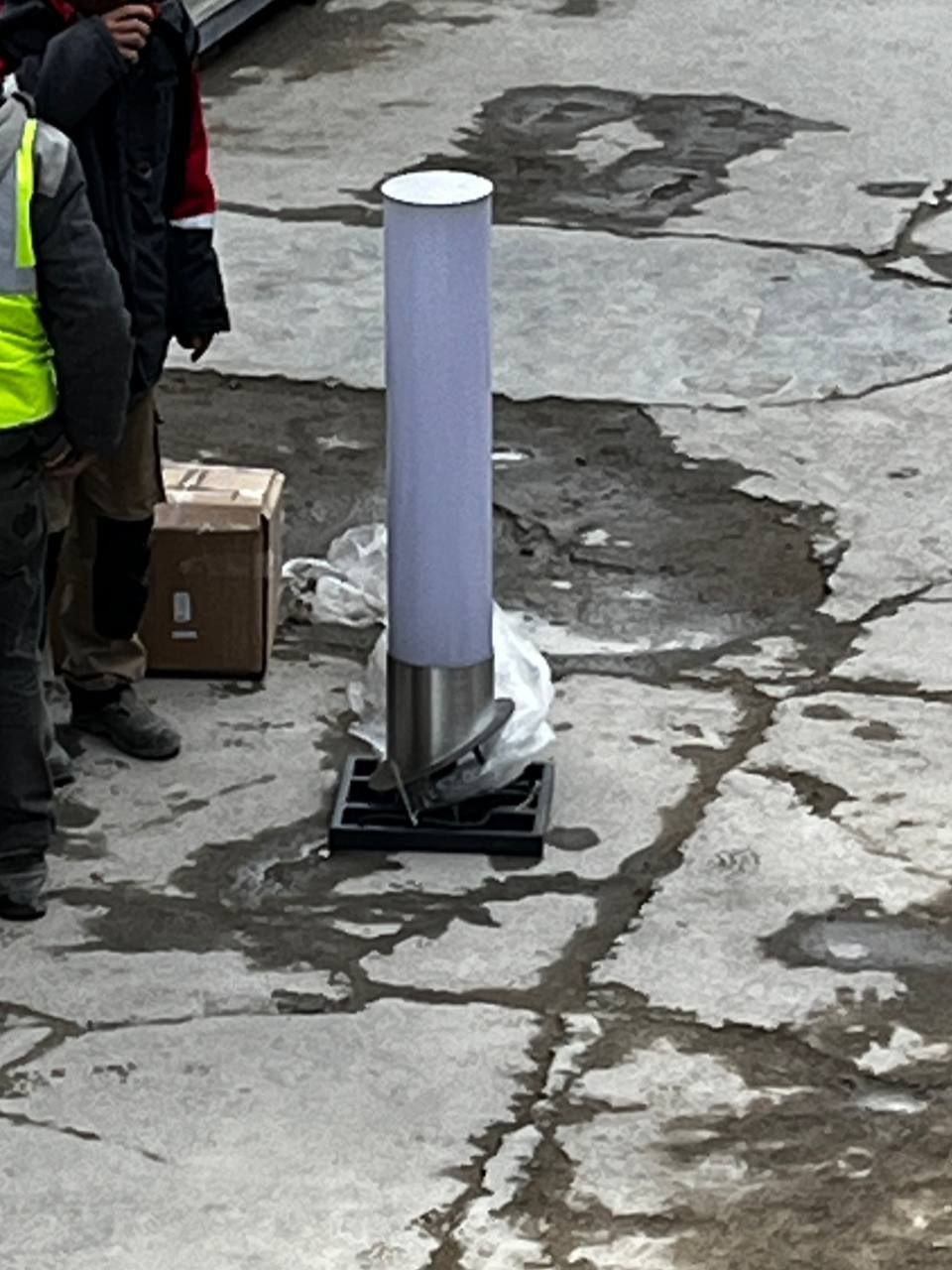 Больше заинтересовала поверхность в трещинах (её местонахождение), на которой стоит столбик.