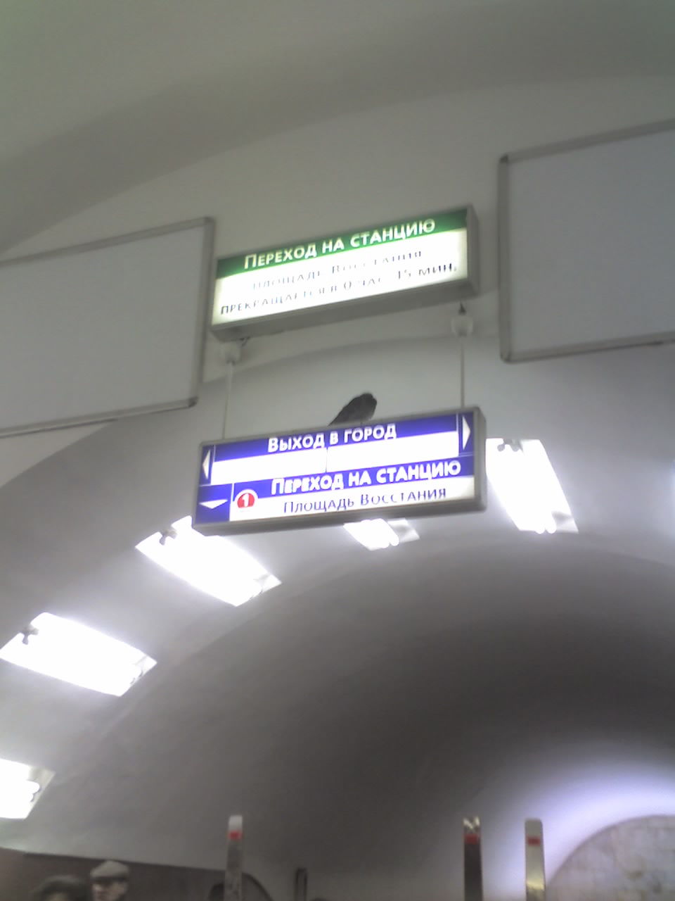 Удивительно что он никогда не залетал дальше этого указателя - т.е. над эскалаторами на воостания он не летал, а перемещался от этого указателя до эскалаторов маяковской и обратно
