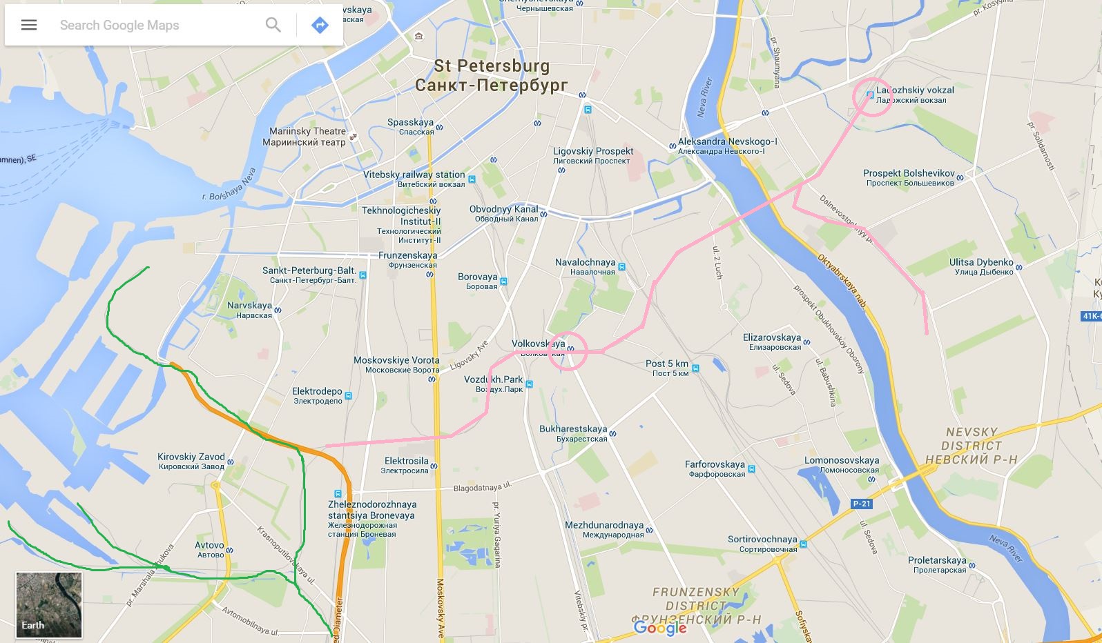 Думал об этом. У нас (в Питере) можно было использовать под метро только ж/д линию фаянсово-зольную(маршрут планируемого ВСД), обозначена розовым. Удобных пересадок можно сделать 2(что мало, но кое-что), их обозначил розовыми кругами. зеленым обозначил участки которые нужны для порта. По всем остальным ж/д маршрутам в городе пригородное и дальнее ж/д движение.