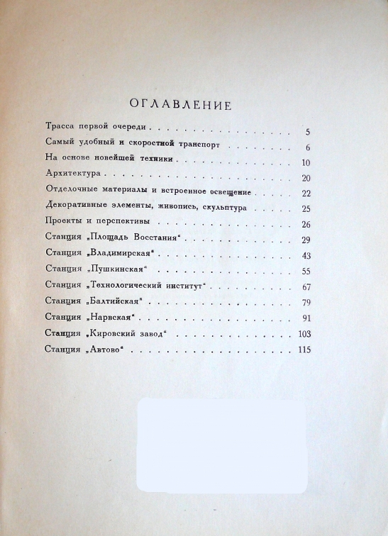 В книге есть статьи про каждую из восьми первых станций. Много иллюстраций. По ним и по тексту можно составить длинный список утрат. Особенно бросаются в глаза многочисленные, ныне не сохранившиеся на своих местах, светильники.