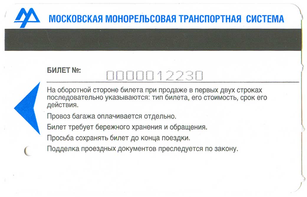 Обратная сторона монорельсного проездного