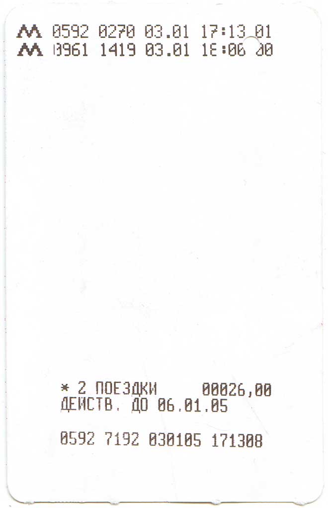 Обратная сторона проездного на 2 поездки