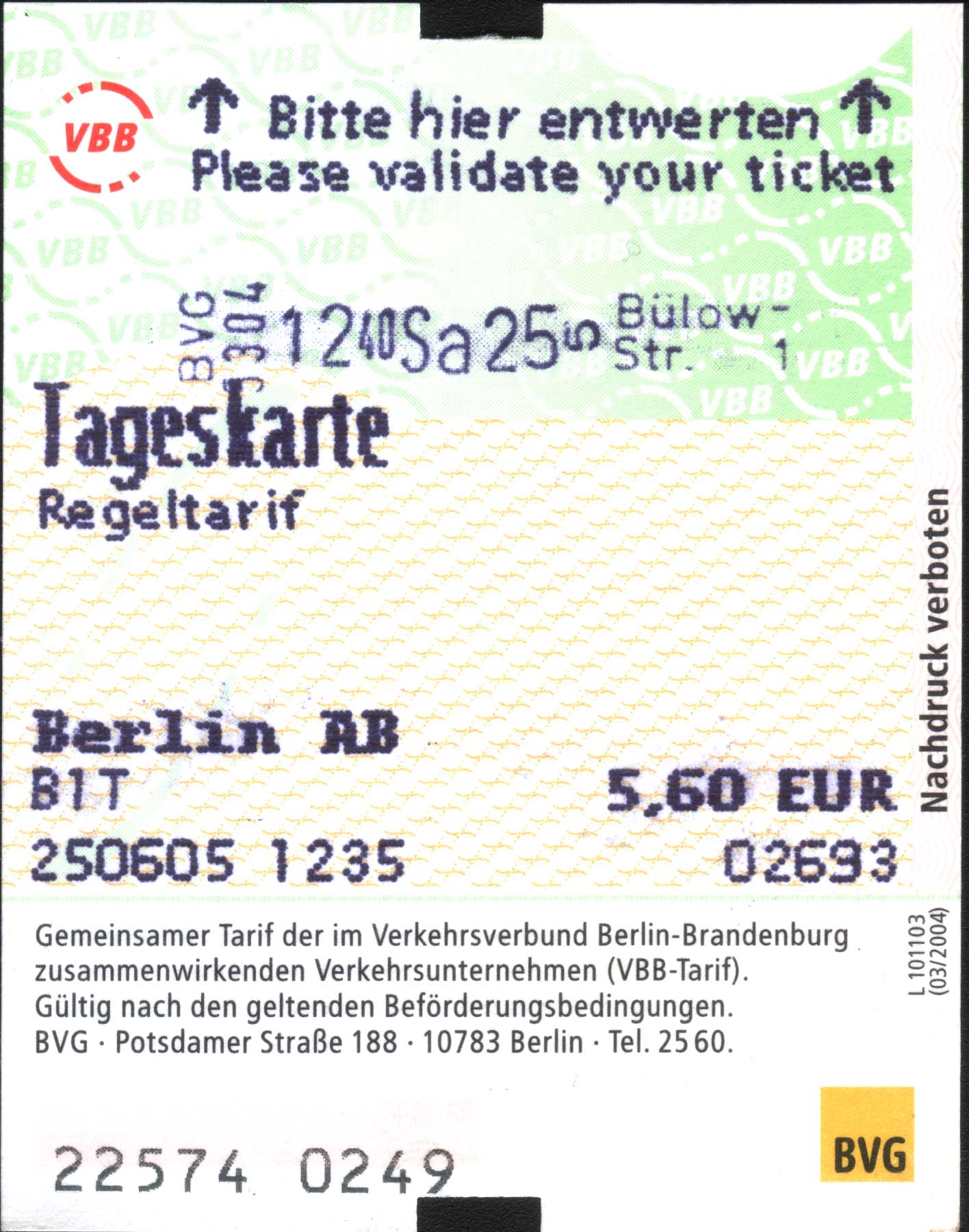 Одноразовый и дневной билеты. Ганновер