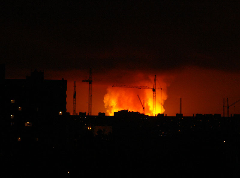 С моста на Культуры фоткали, похоже. С того ракурса - полная уверенность, что ТЭЦ. Я смотрел с балкона вдоль Гражданского проспекта - ИМХО очаг был западнее ТЭЦ и даже западнее ж/д. Кроме того, судя по быстрому угасанию зарева и вполне "бытовому" запаху гари, - всё же это газ.