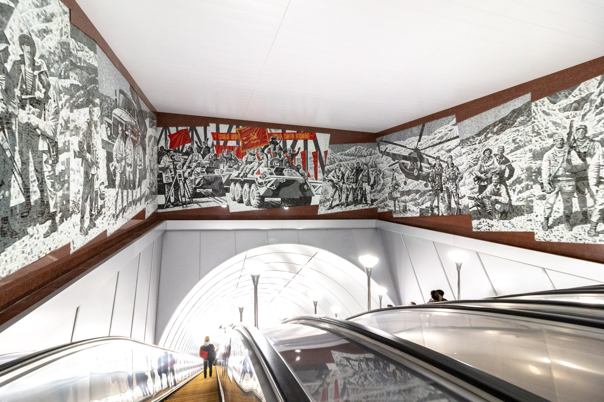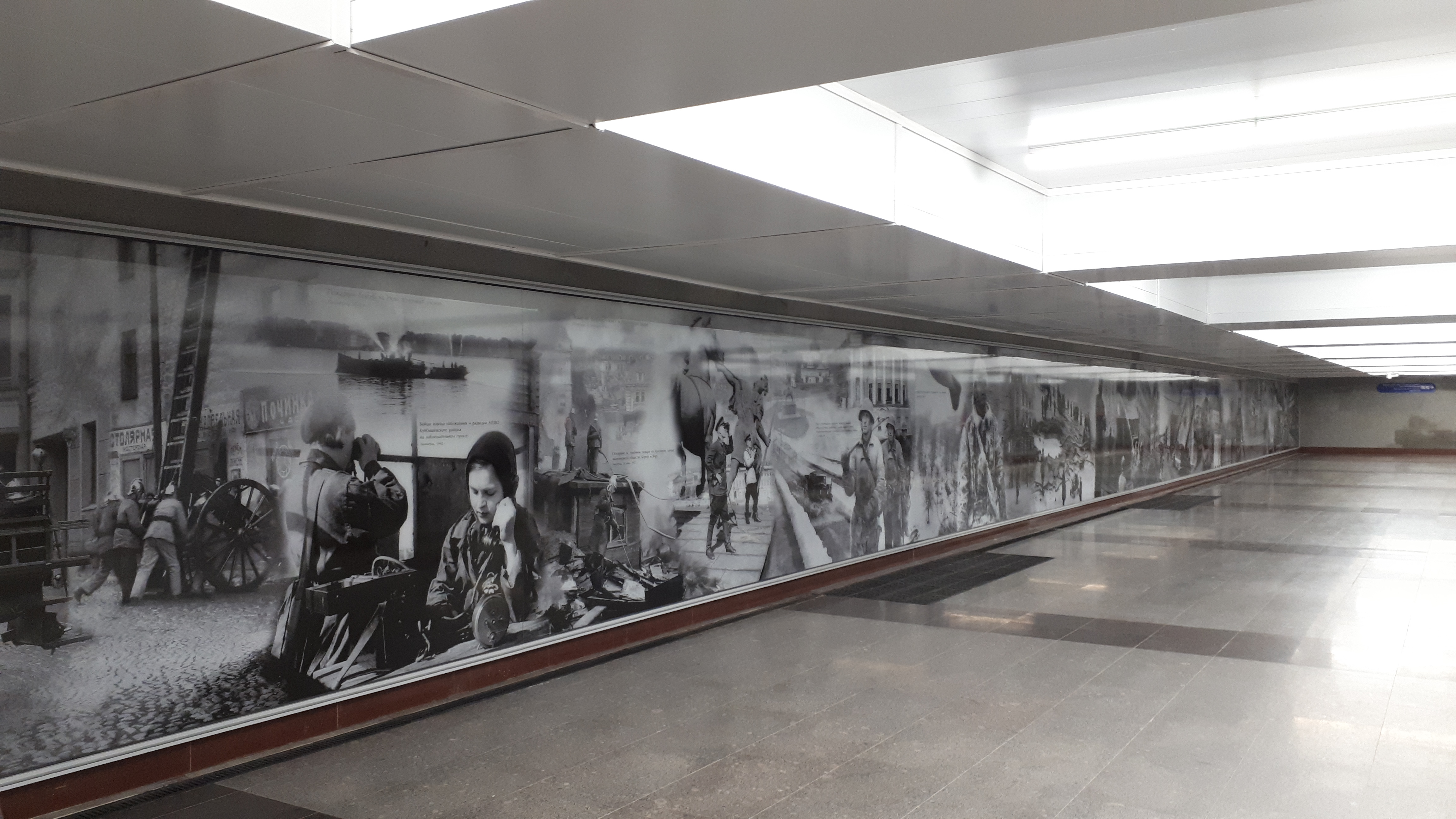 И пара фотографий подземного зала, он, пожалуй, вышел действительно самым нарядным из открывшегося участка