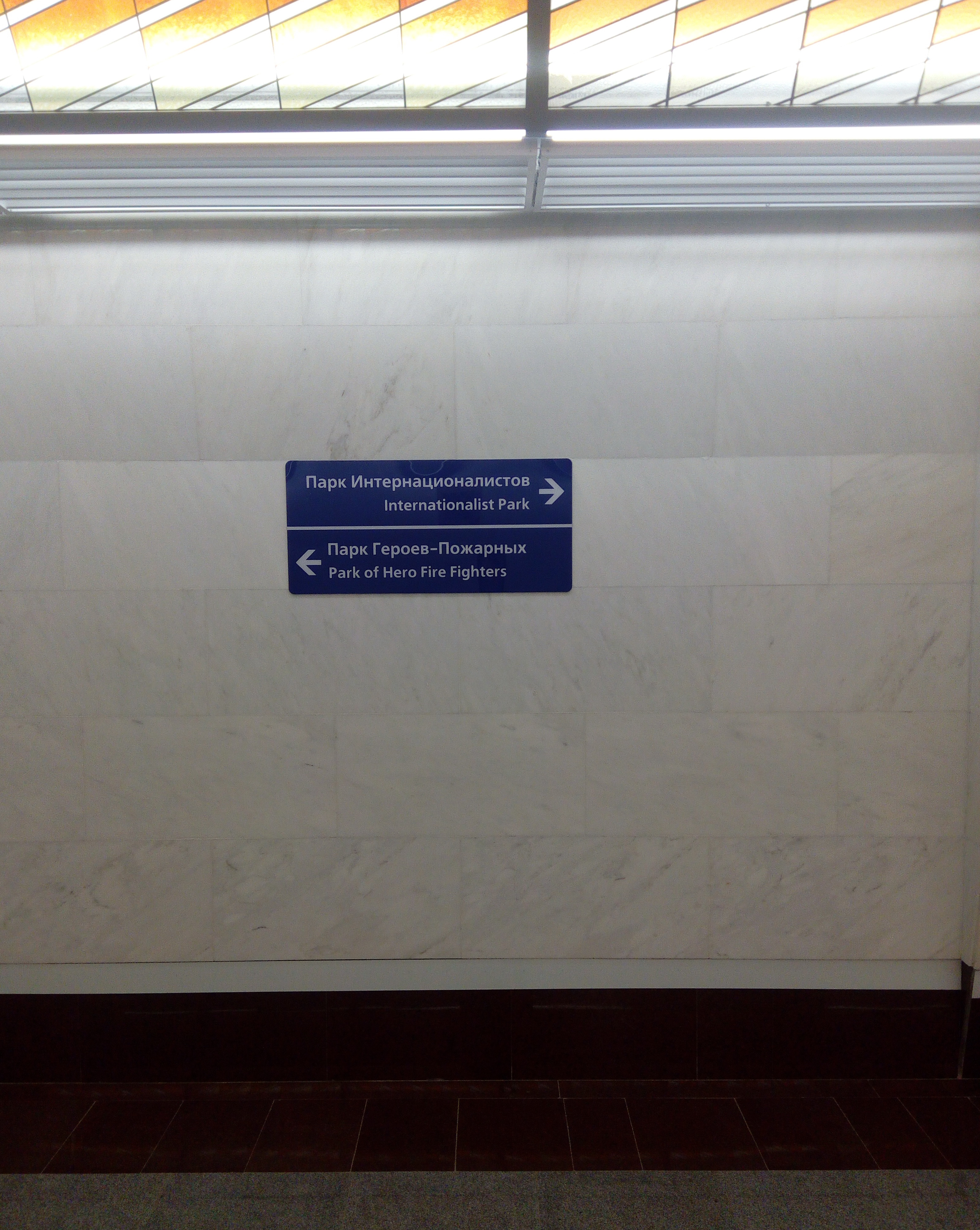 немного удивила навигация - помимо указателей направлений выходов к улицам, отдельно от них установлены указатели выходов к паркам, причем более крупные и соответственно более заметные.