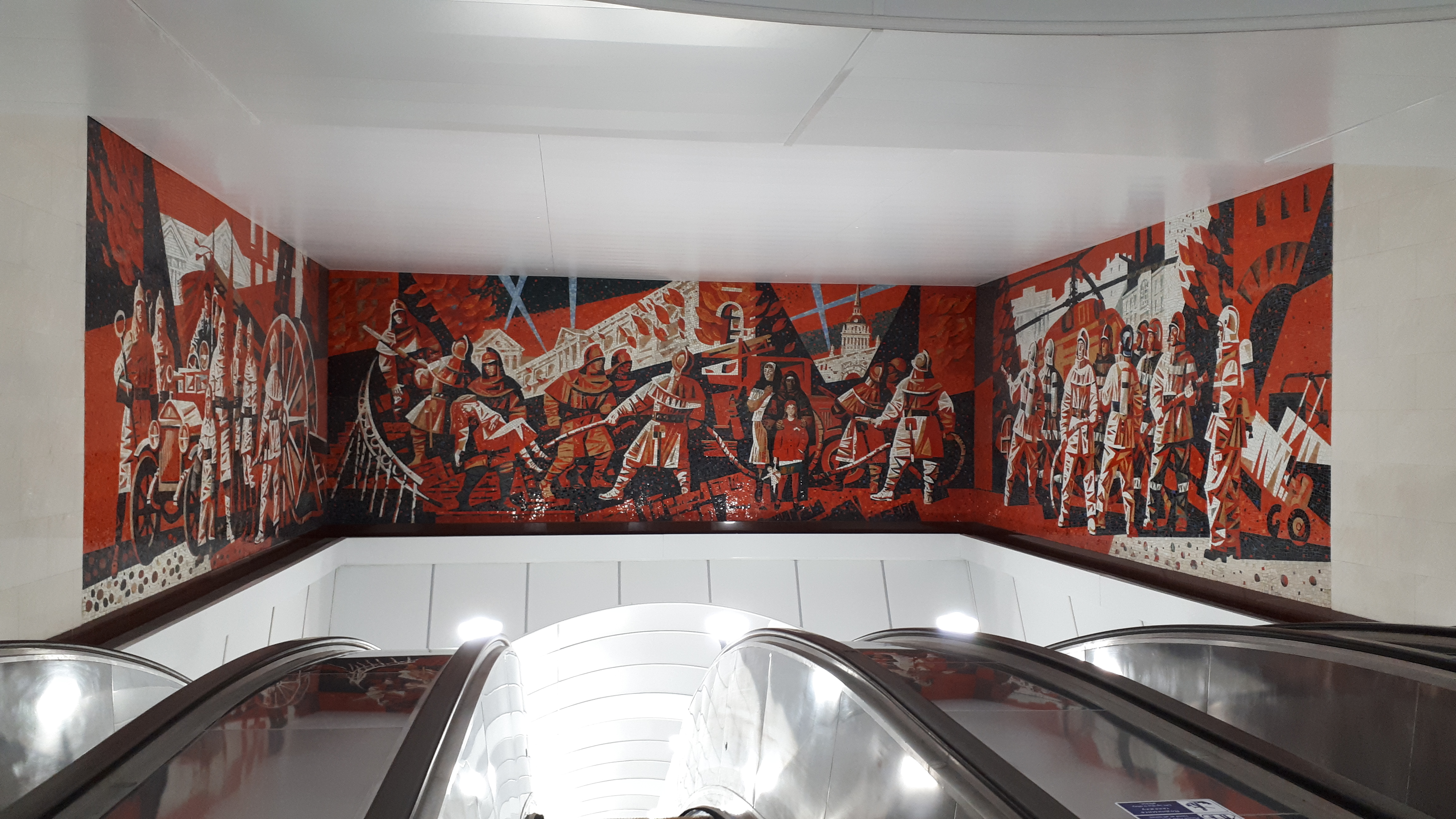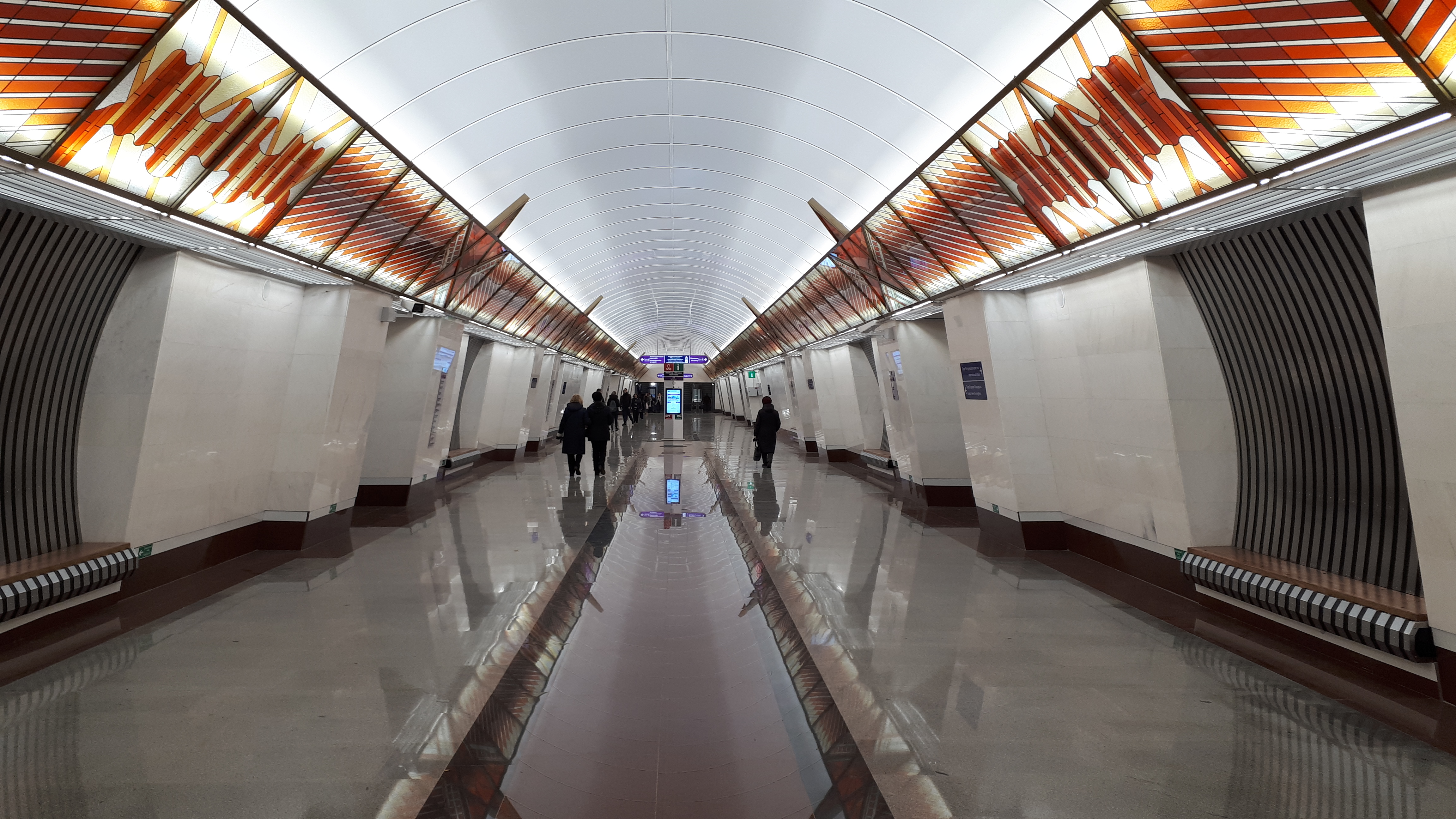 На первых рендерах и эскизах она смотрелась гораздо хуже: там все было красное - вырви глаз. В реальности все получилось гораздо мягче, и станция получилась очень красивая. Не такая выпендрёжная, как Обводный канал, но стильная - как Звенигородская или Бухарестская.