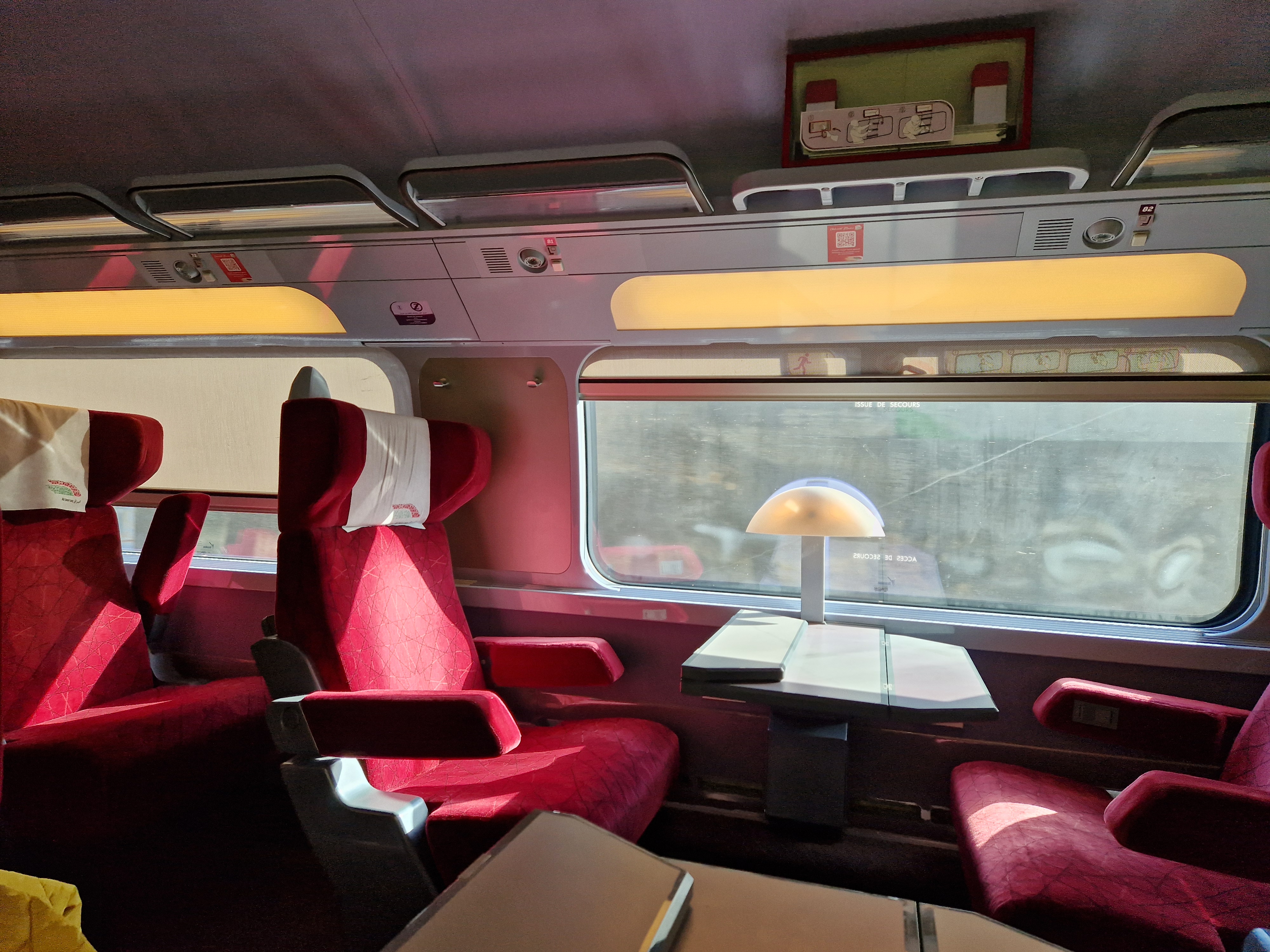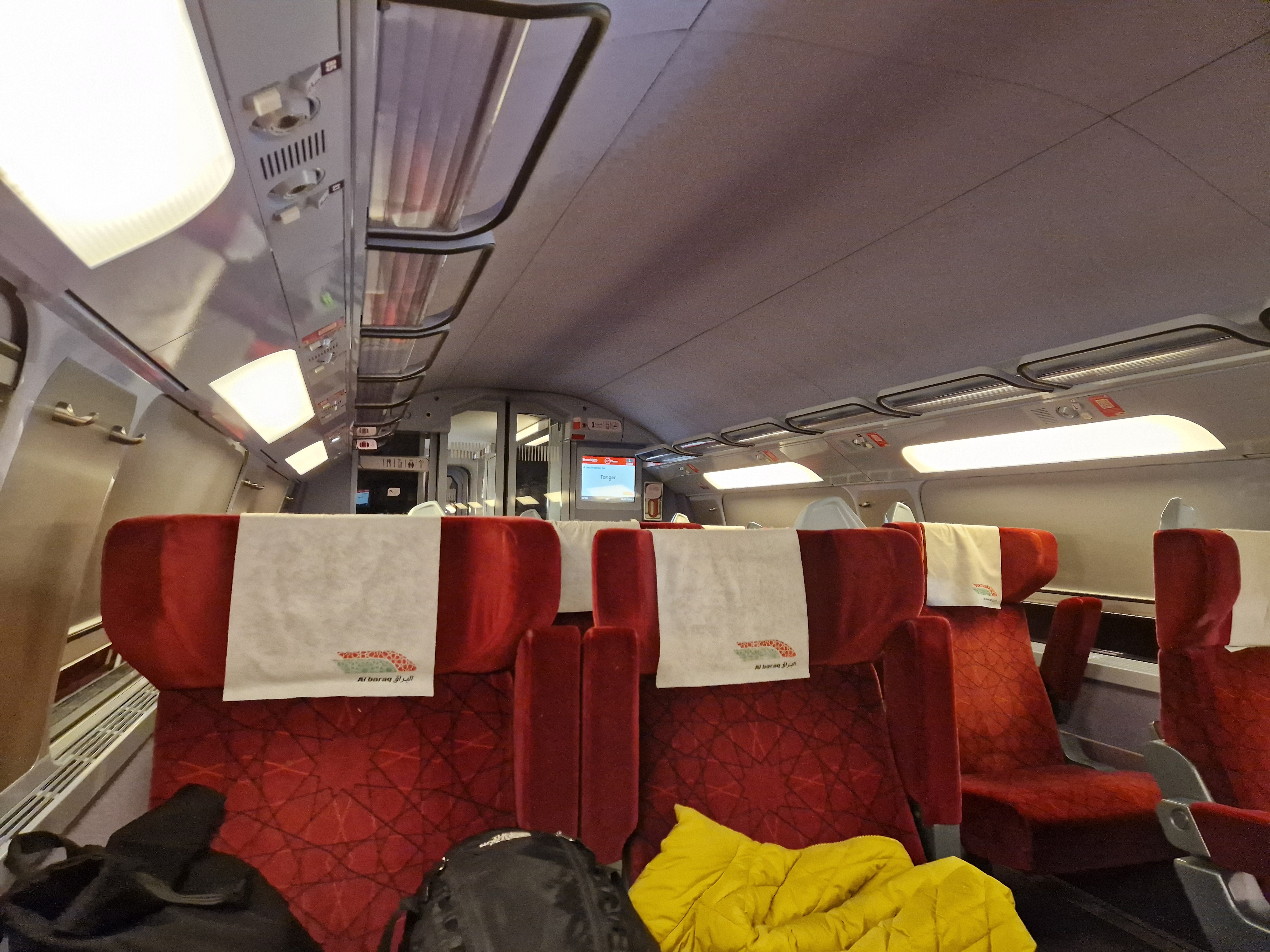В принципе обычный омерзительный скоростной поезд, укачивает и душно прям как дома в Германии, зато, в отличие от марокканской электрички, не засрано. Зато в обычной марокканской электричке не душно и не укачивает.