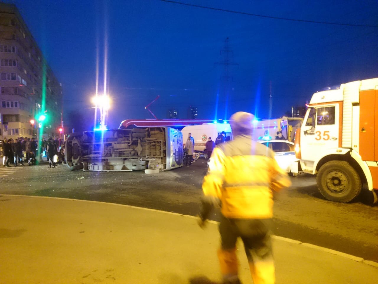 Очередной пример ущербности маршруток. Сегодня очередная кибитка пыталась проскочить вперёд трамвая, но, как всегда, не получилось. Как результат - перевёртыш, скорые, подбит трамвай и серьёзно пострадал автомобиль маршрутки. Ну и наверное те, кто был внутри маршрутки, как минимум лёгкие травмы и шок.