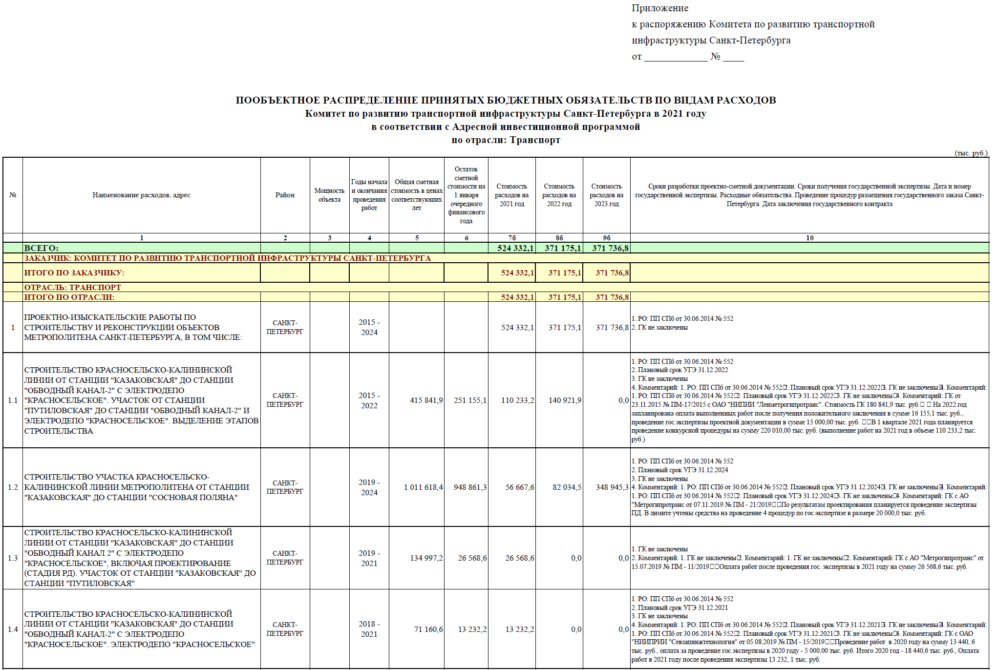 1. СТРОИТЕЛЬСТВО КРАСНОСЕЛЬСКО-КАЛИНИНСКОЙ ЛИНИИ ОТ СТАНЦИИ "КАЗАКОВСКАЯ" ДО СТАНЦИИ "ОБВОДНЫЙ КАНАЛ-2" С ЭЛЕКТРОДЕПО "КРАСНОСЕЛЬСКОЕ". ЭЛЕКТРОДЕПО "КРАСНОСЕЛЬСКОЕ".