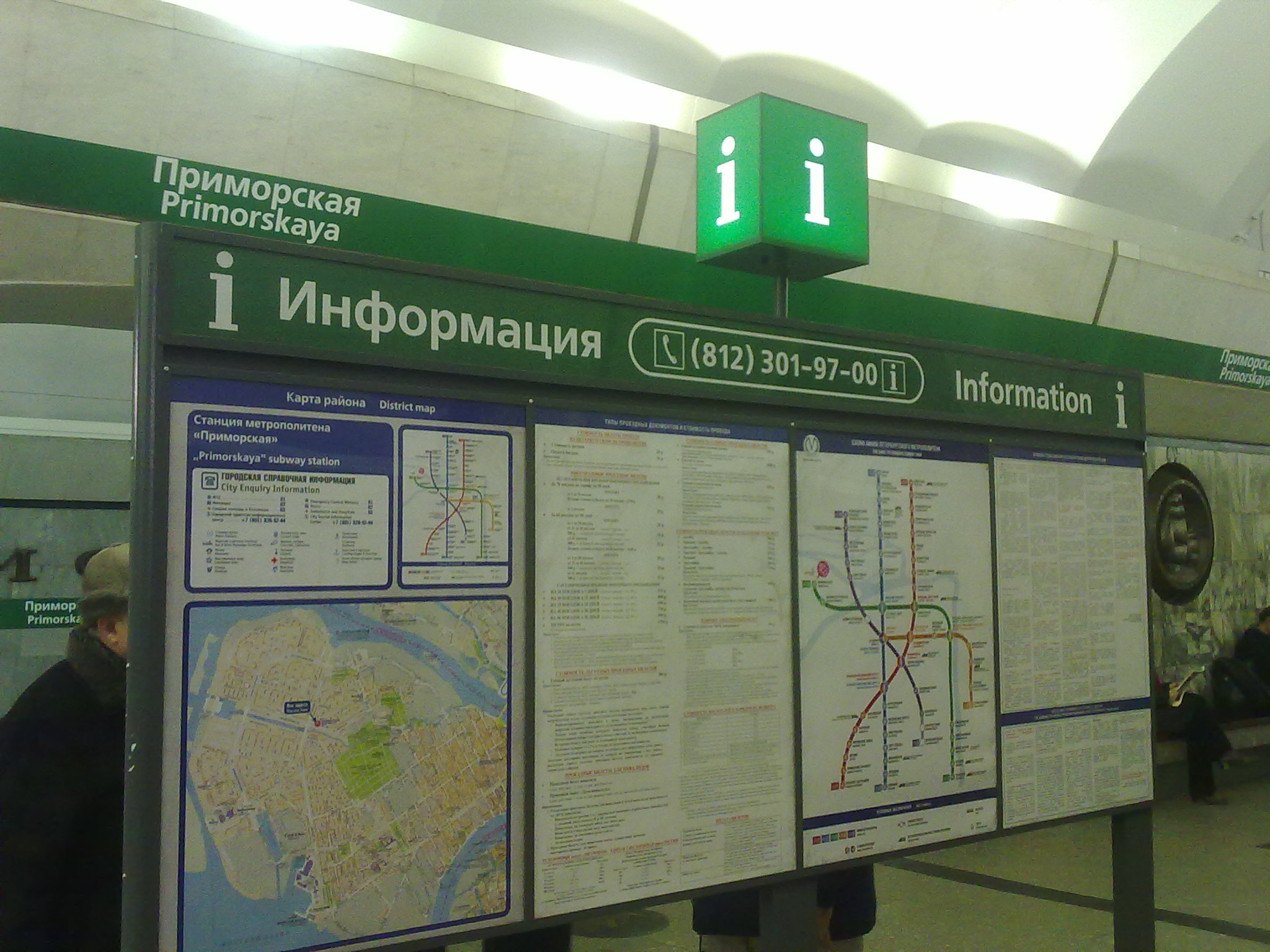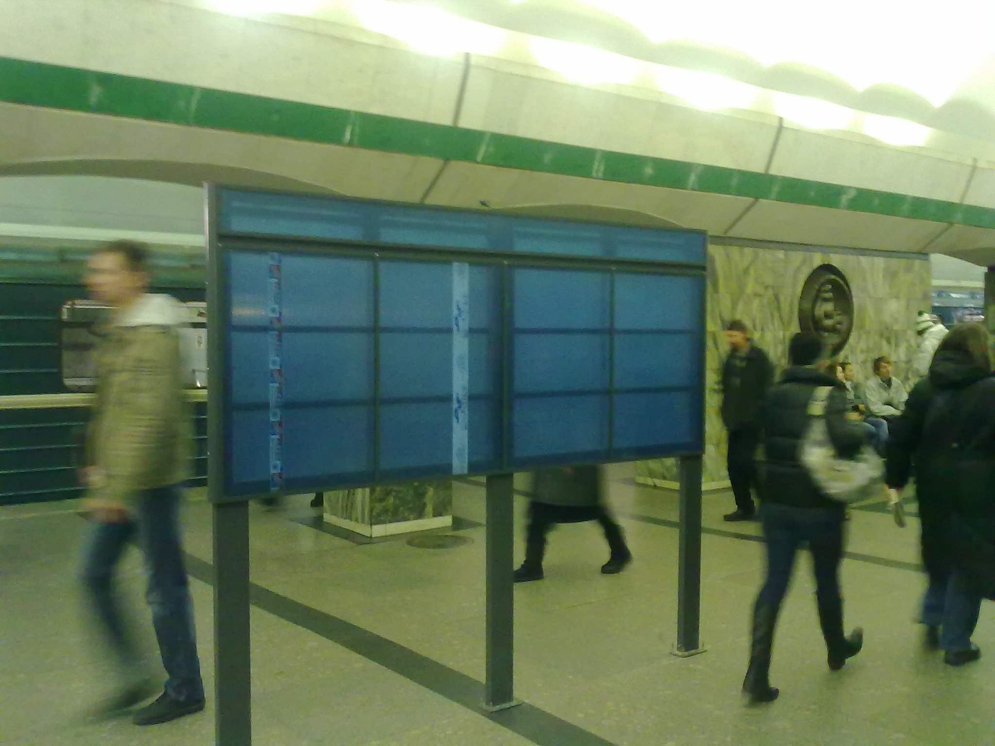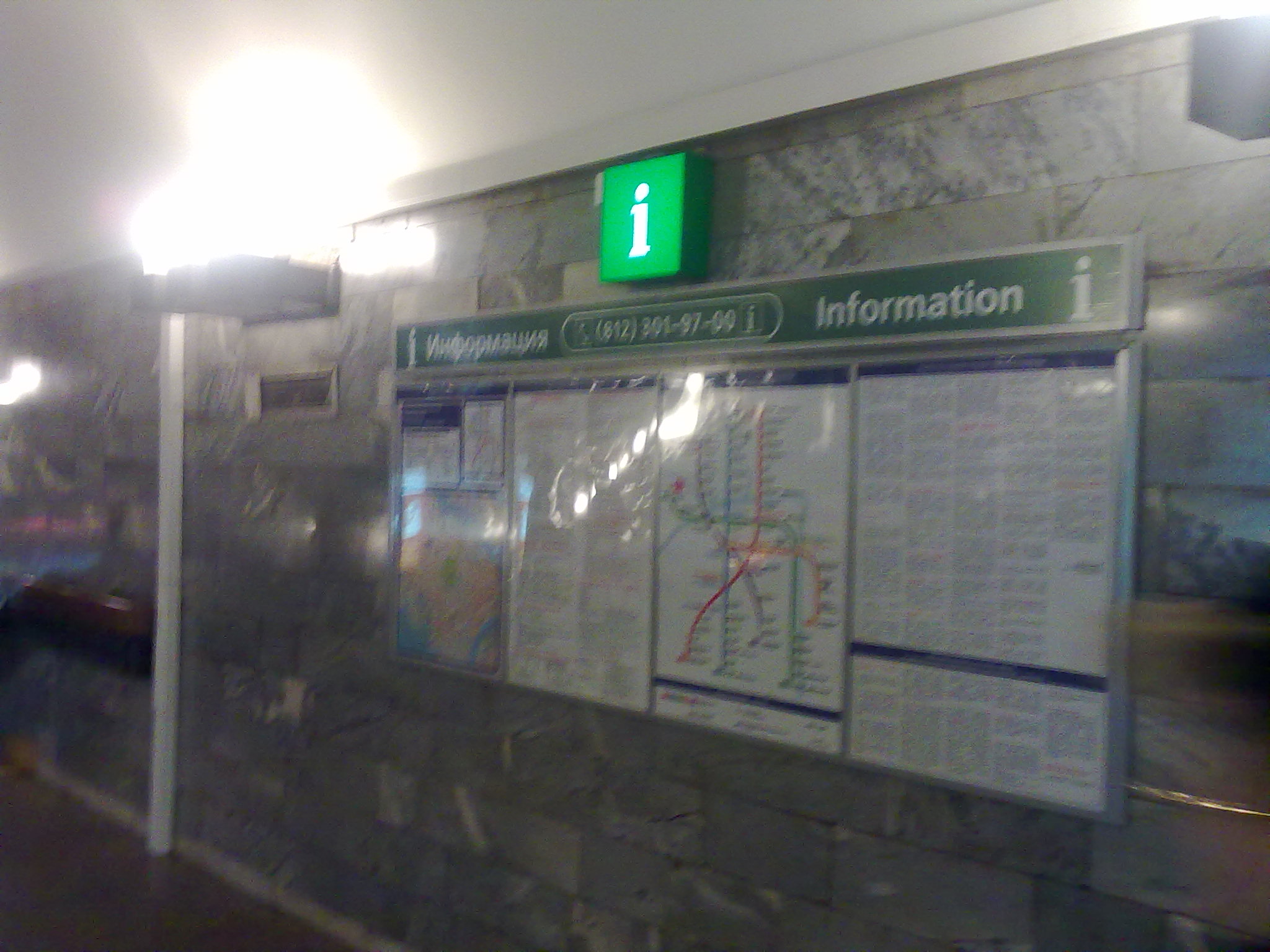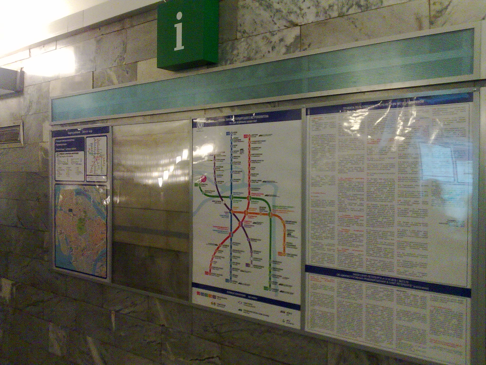 Инфощит в дальнем углу у антитеррористической рамки и аквариума СКМ. <br />В свое время фото, с участием лиц которые в кадр, каралось штрафом :)