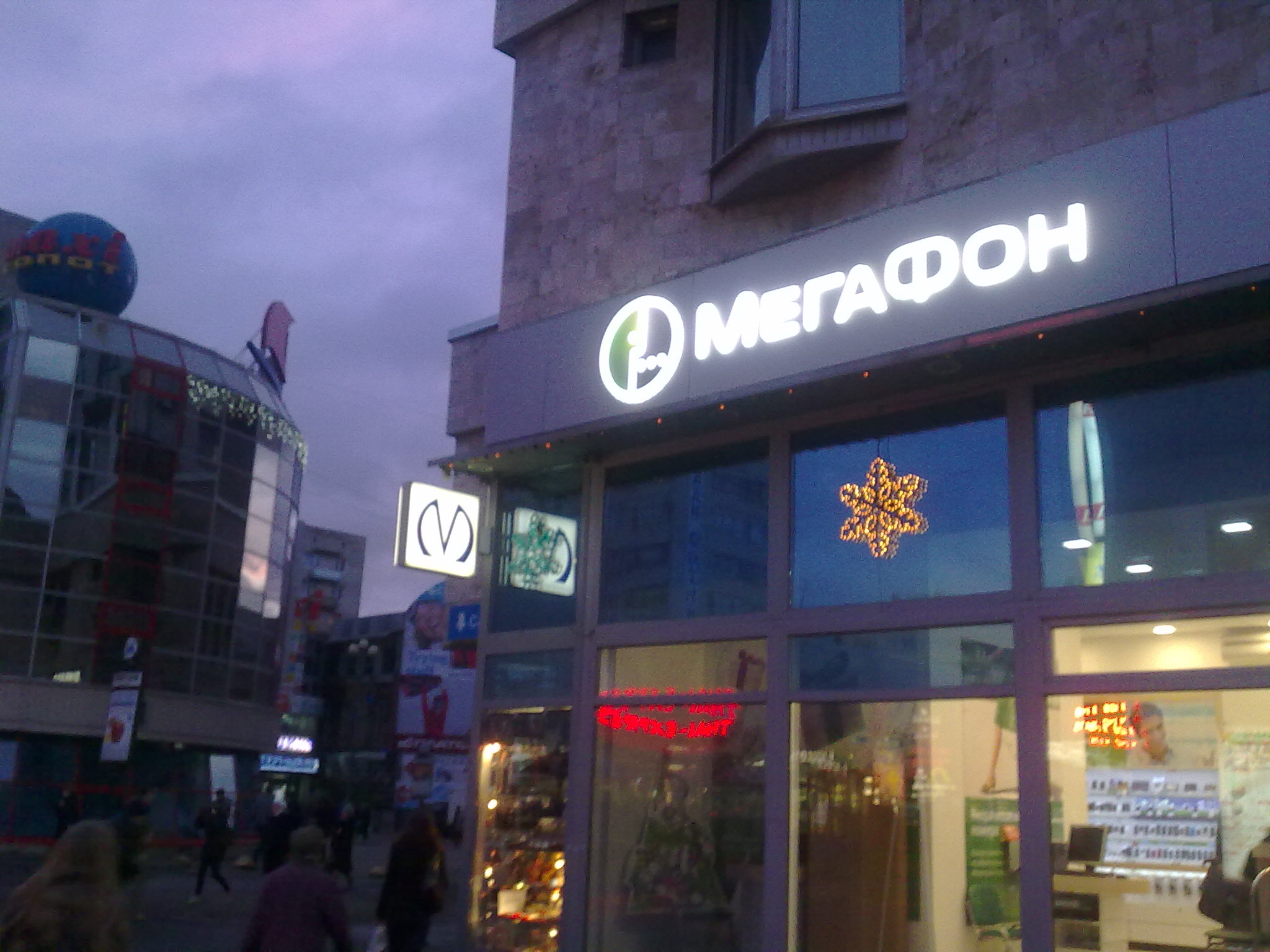 Налепили кубик над входом. И включили подсветку сосисок. Логотип (\/) демонтирован