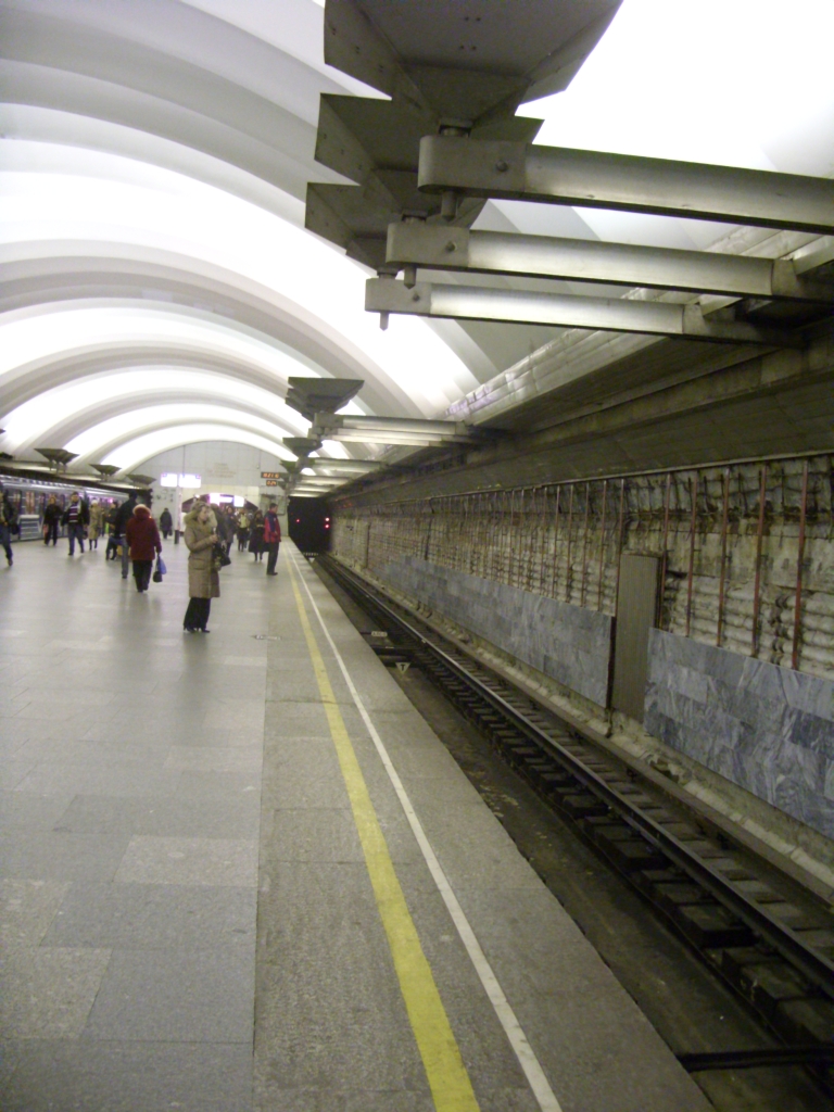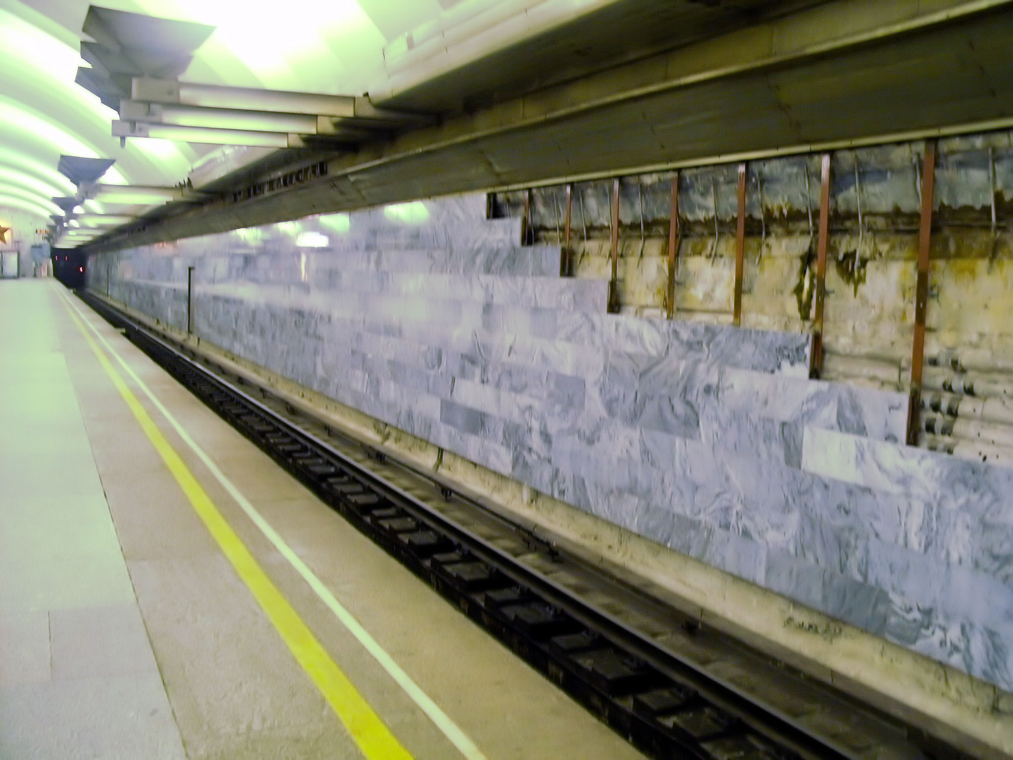 Сегодняшнее состояние путевой стены. Собственно говоря, это самый большой почти полностью доделанный участок (в конце станции, в сторону Политехнической), на остальных местах сделали либо до середины, либо вообще ещё не начинали.