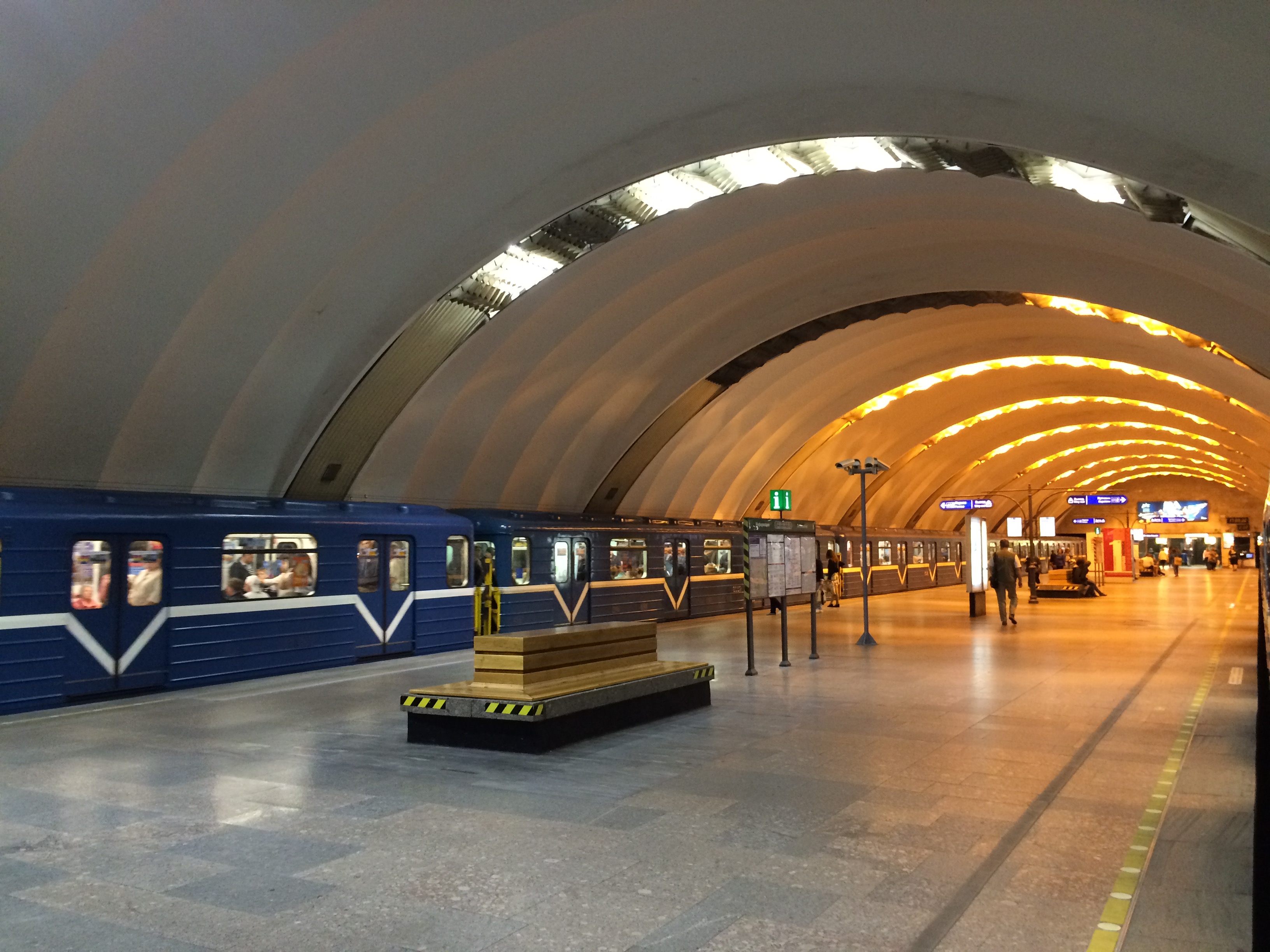 Лишнее подтверждение того, насколько освещение станций натриевыми лампами искажает изначально задуманную цветовую гамму. Народ уже начинает подзабывать, какая станция была изначально. Для Вас и серый цвет стен Ладожской тоже может стать открытием.