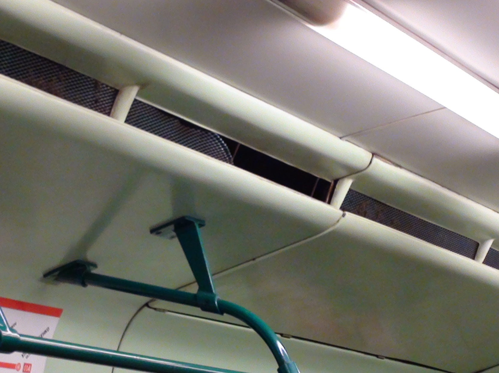 Что касается сеток, то раньше не делали салоны с такими элементами, которые могли бы со временем взять и отвалиться. А тут, кто знает, может быть куски сами отвалились. Или их часть стала болтаться, а в депо решили тупо срезать болтающийся кусок, чем возиться-ремонтировать. Сам видел выпавшую сетку в вагоне гораздо новее этого. Но там она видна была только под определенным углом, т.к. воздухозаборник прикрывается еще и декоративной панелью. А тут всё как на ладони.