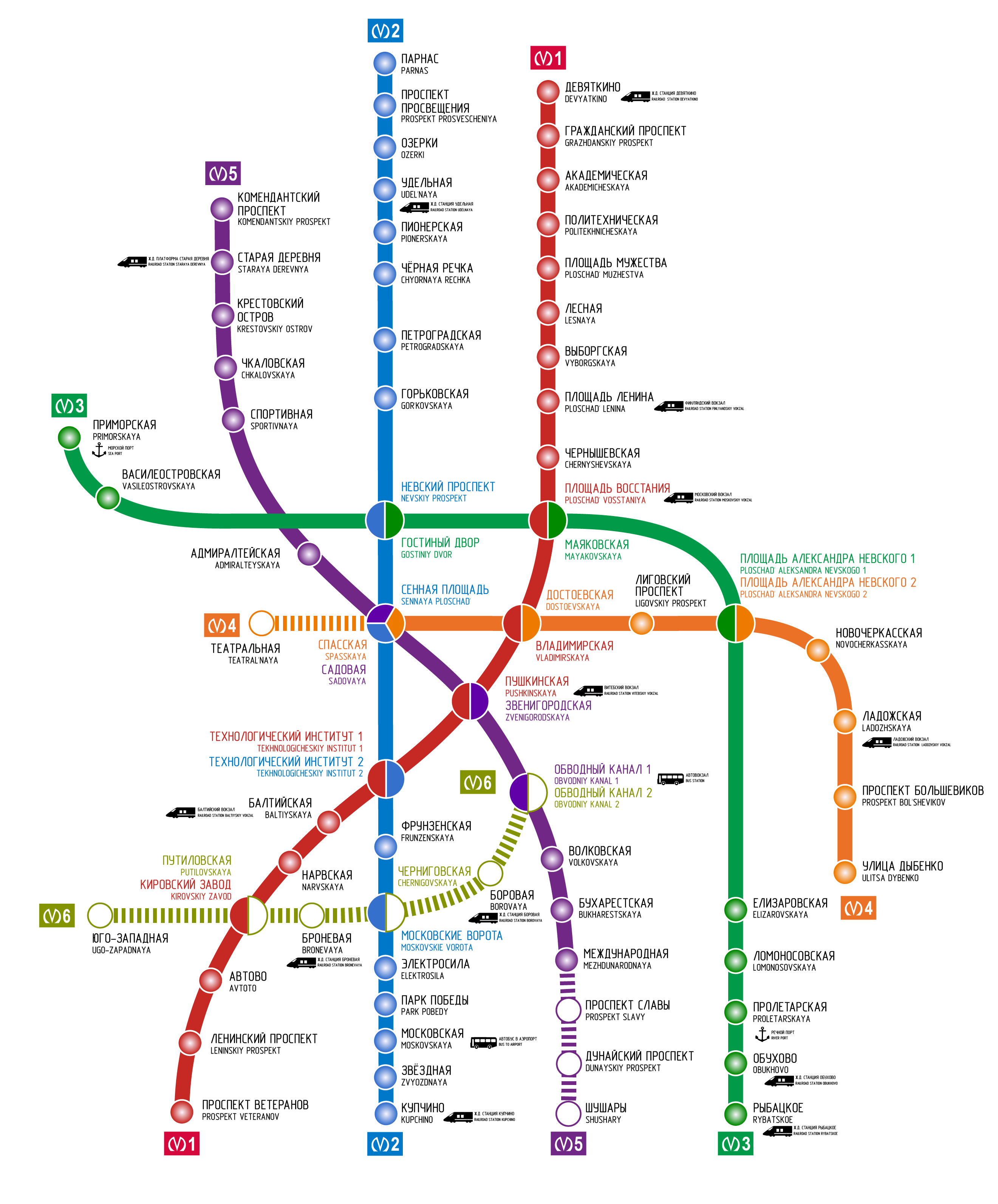 - цвета М3, М4 и М5 на пересадках не совпадают с цветами линий