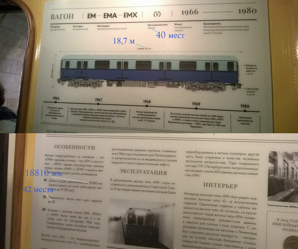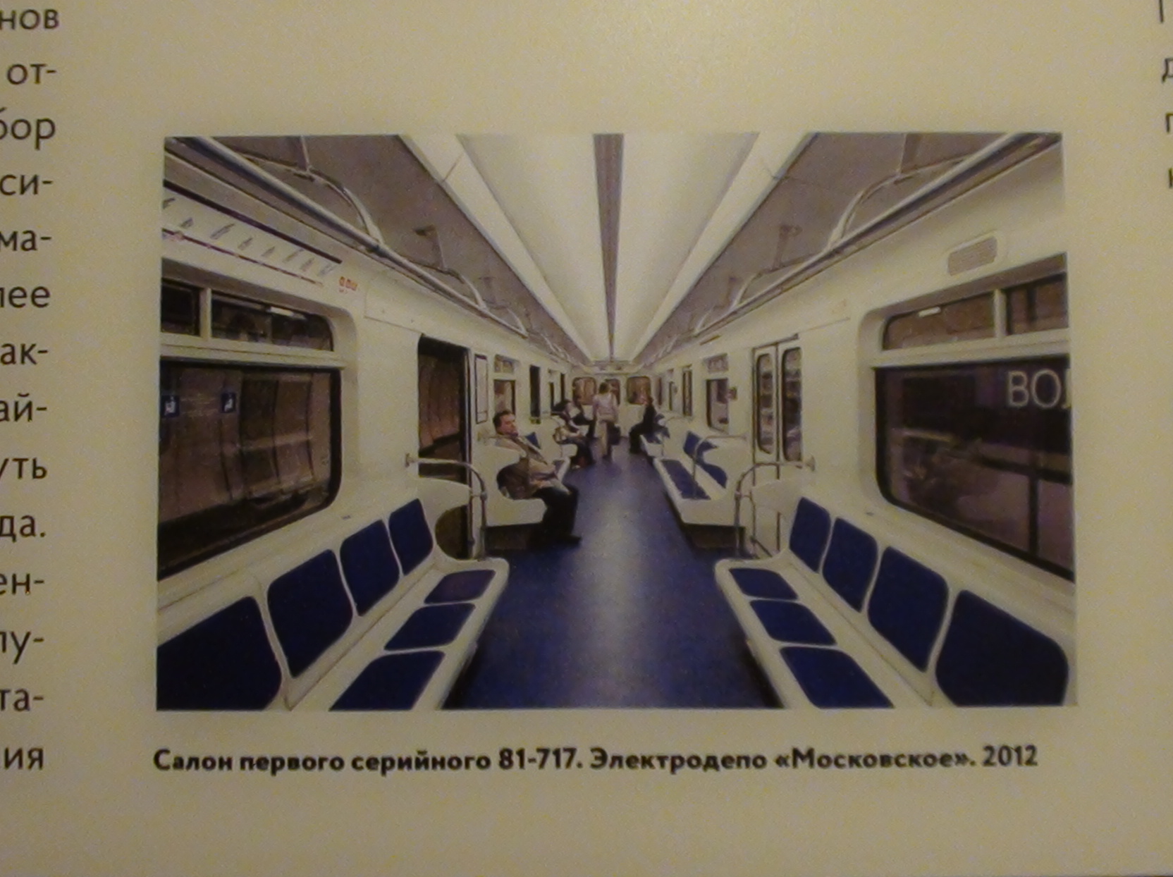 2. На одном из стендов над надписью "Салон первого серийного 81-717. Электродепо "Московское". 2012" совершенно другая фотография. На снимке "Салон 81-714.5П, 0111. Станция Волковская. 2012".