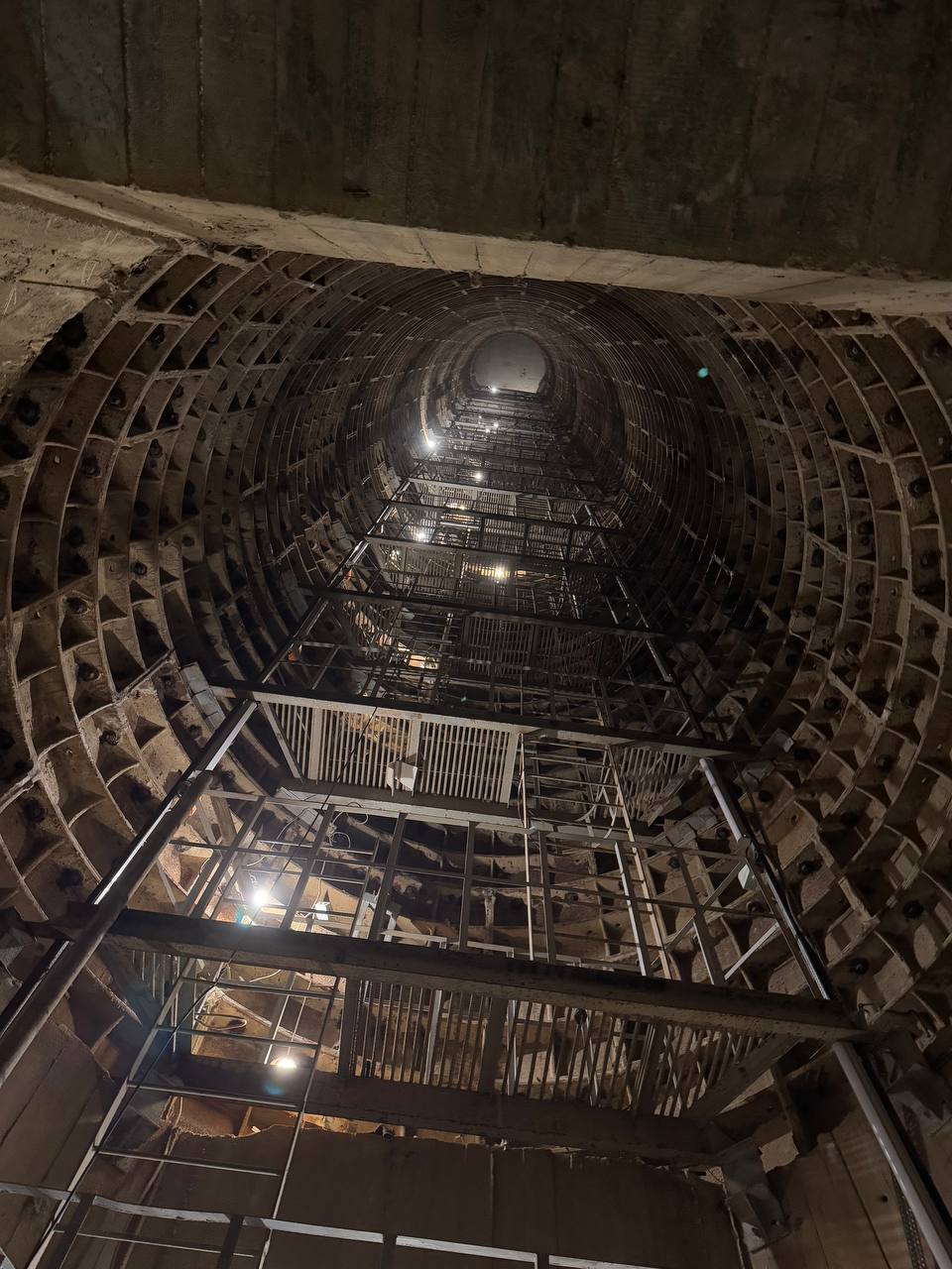 В стволе шахты возведена стена разделяющая её на две части, которые будут использоваться для вентиляции и эвакуации пассажиров. В эвакуационной части смонтирована лестница, по которой пассажиры смогут подняться с глубины ~ 60 метров.