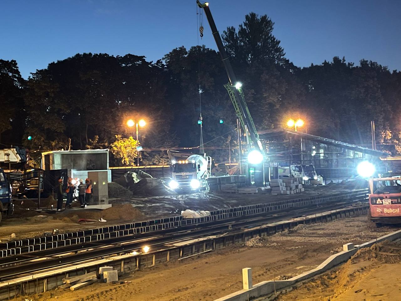 Трамвайные пути будут проходить над пешеходным переходом будущего вестибюля. Возобновить движение трамваев планируется одновременно с пуском новой станции.