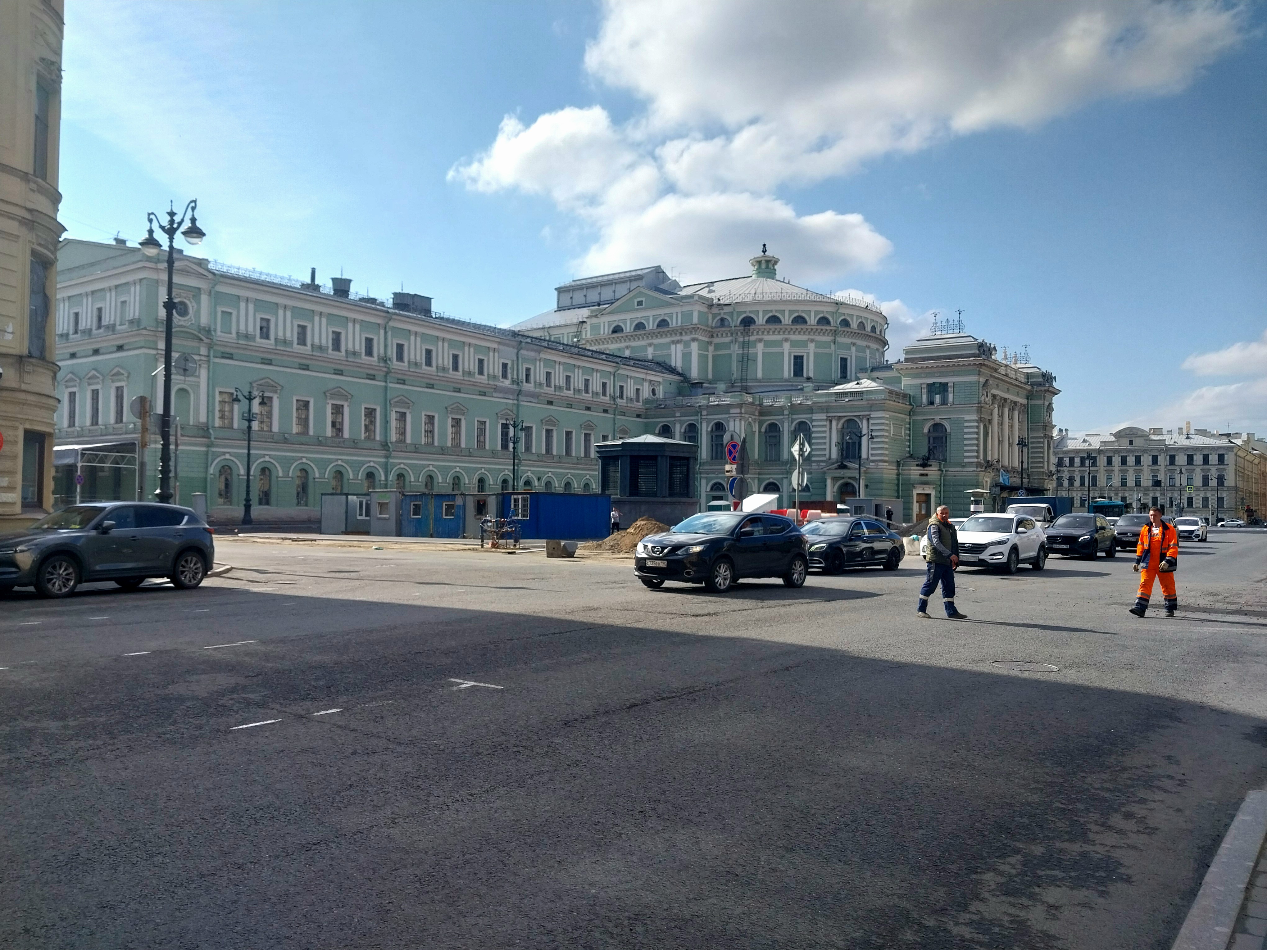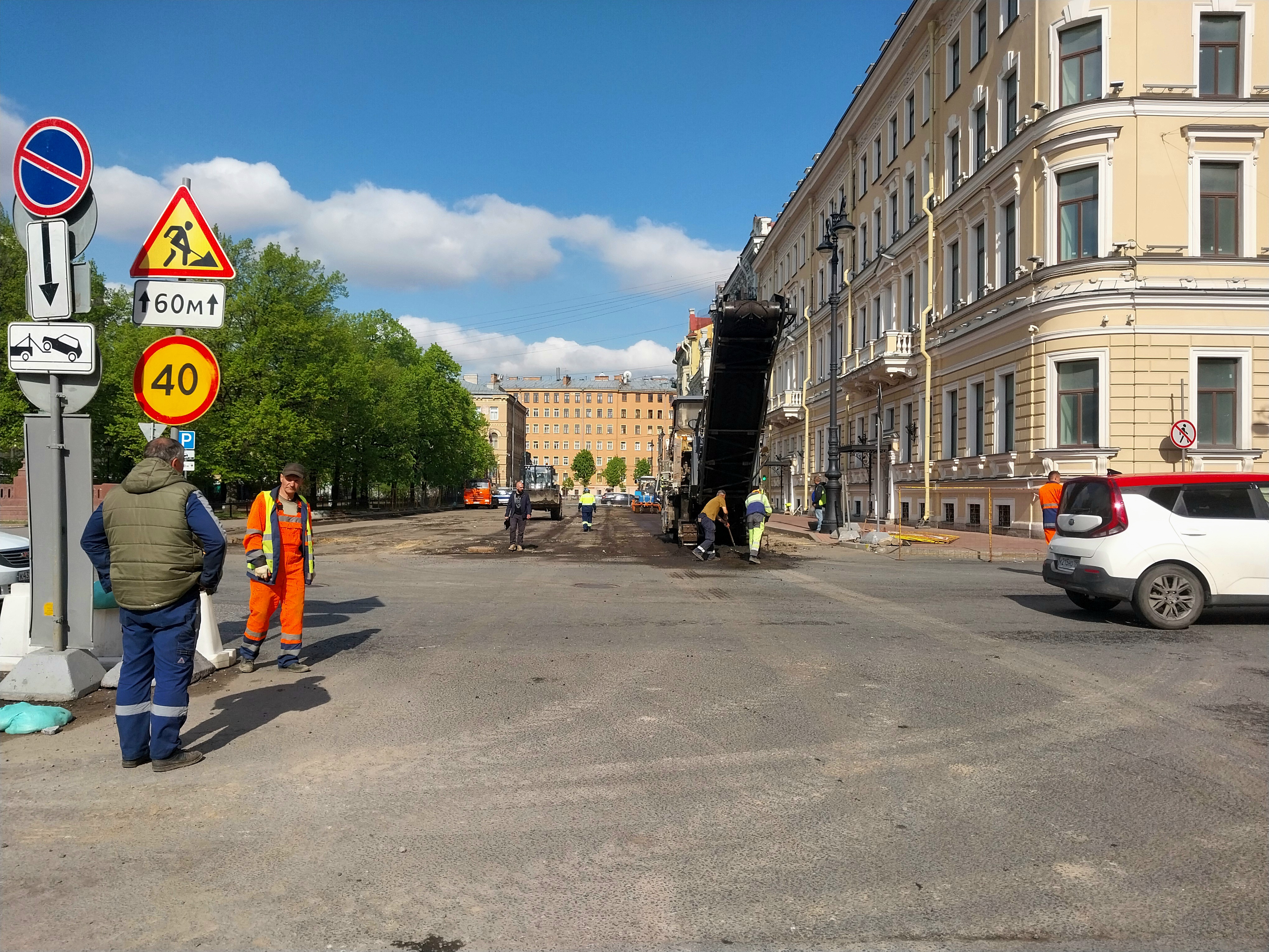 Взялись за асфальт (снятие старого верхнего слоя) у Мариинки