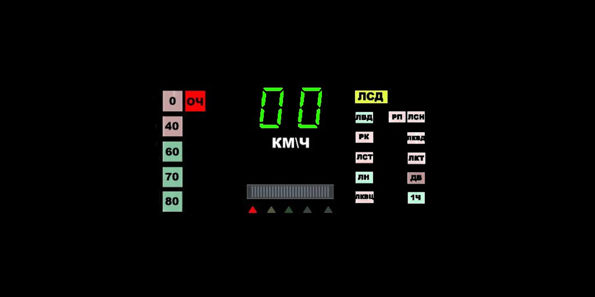 Все индикаторы описаны выше кроме ЛРД - лампа разрешения движения при допустимой скорости "0", зелёная.