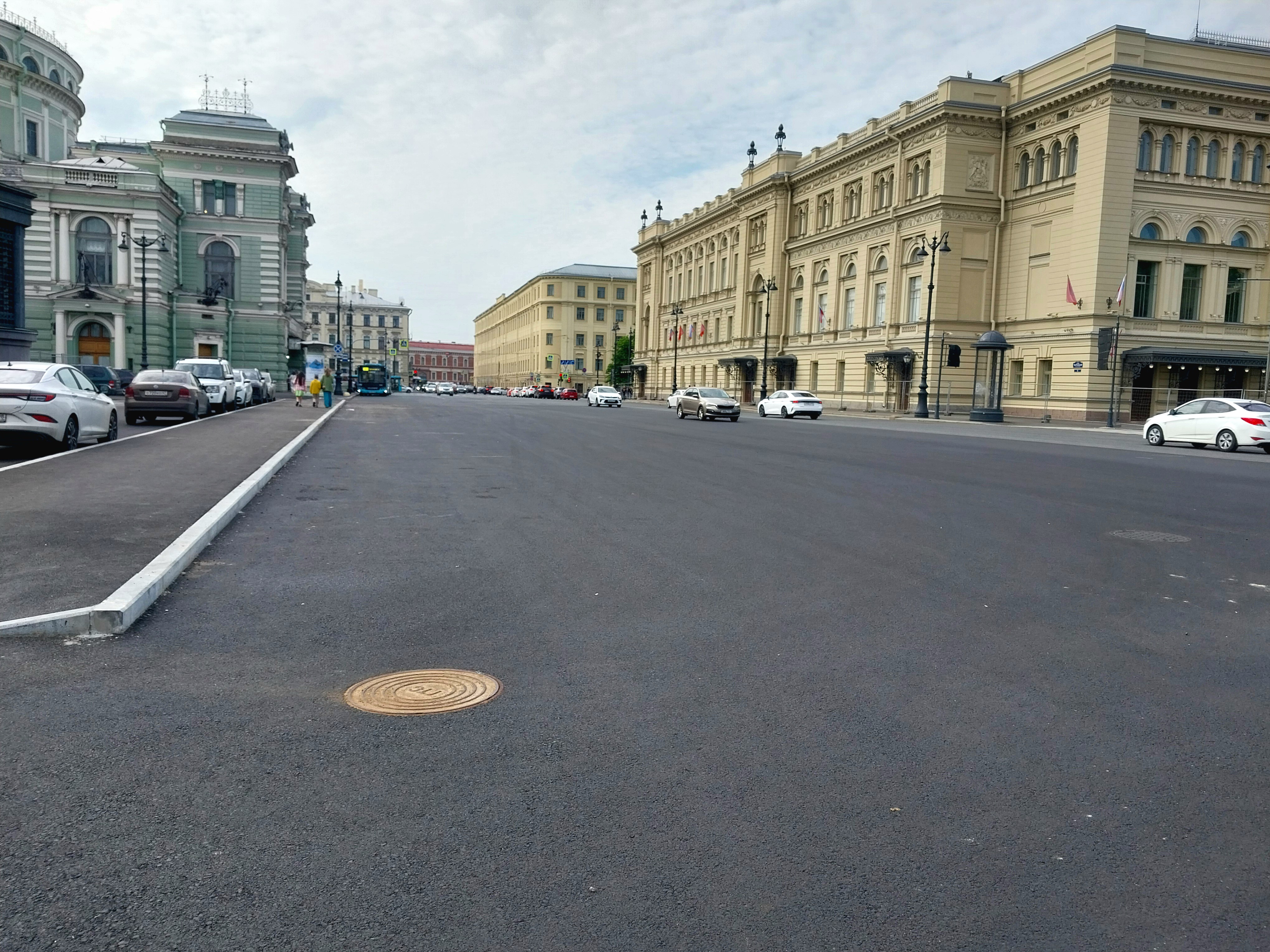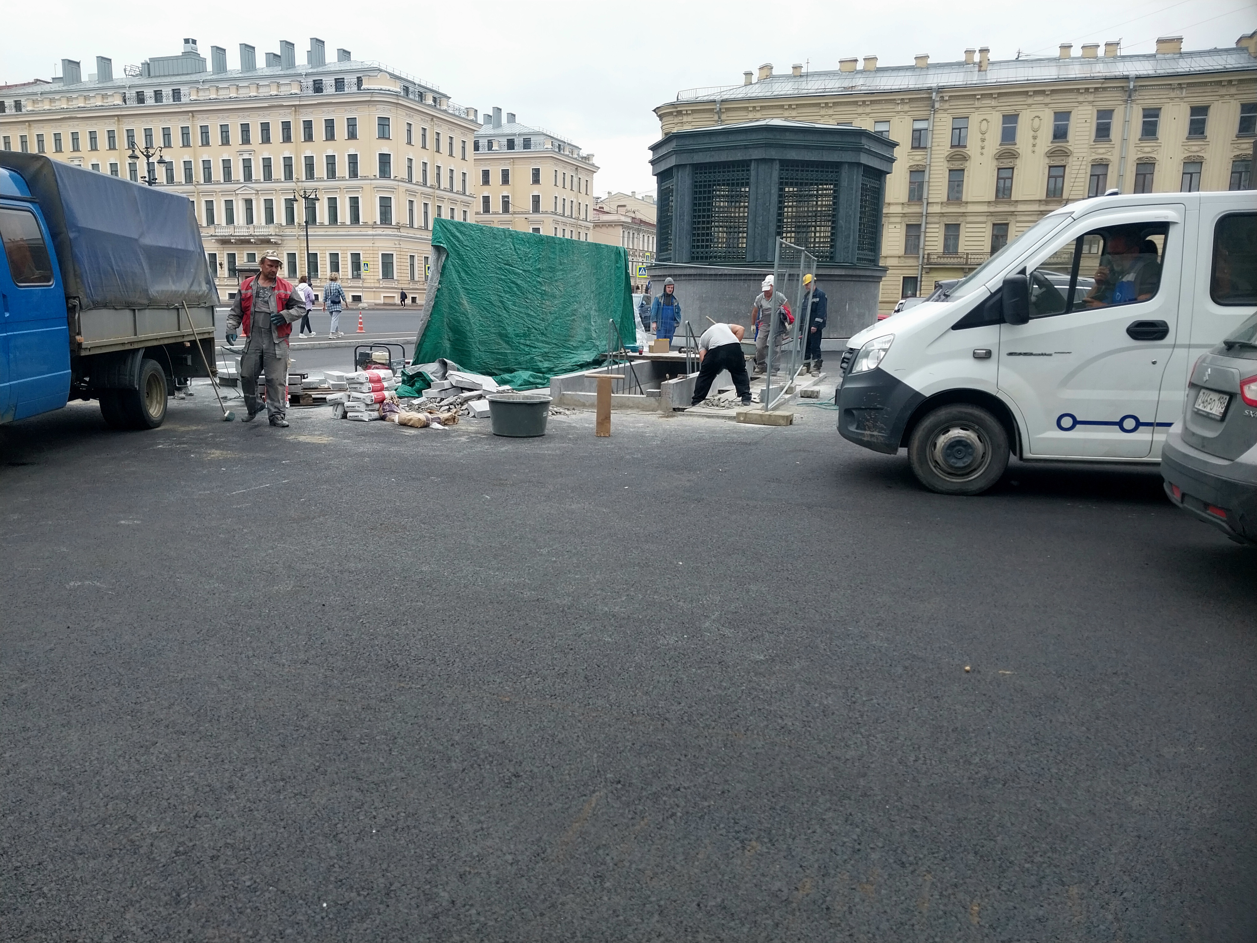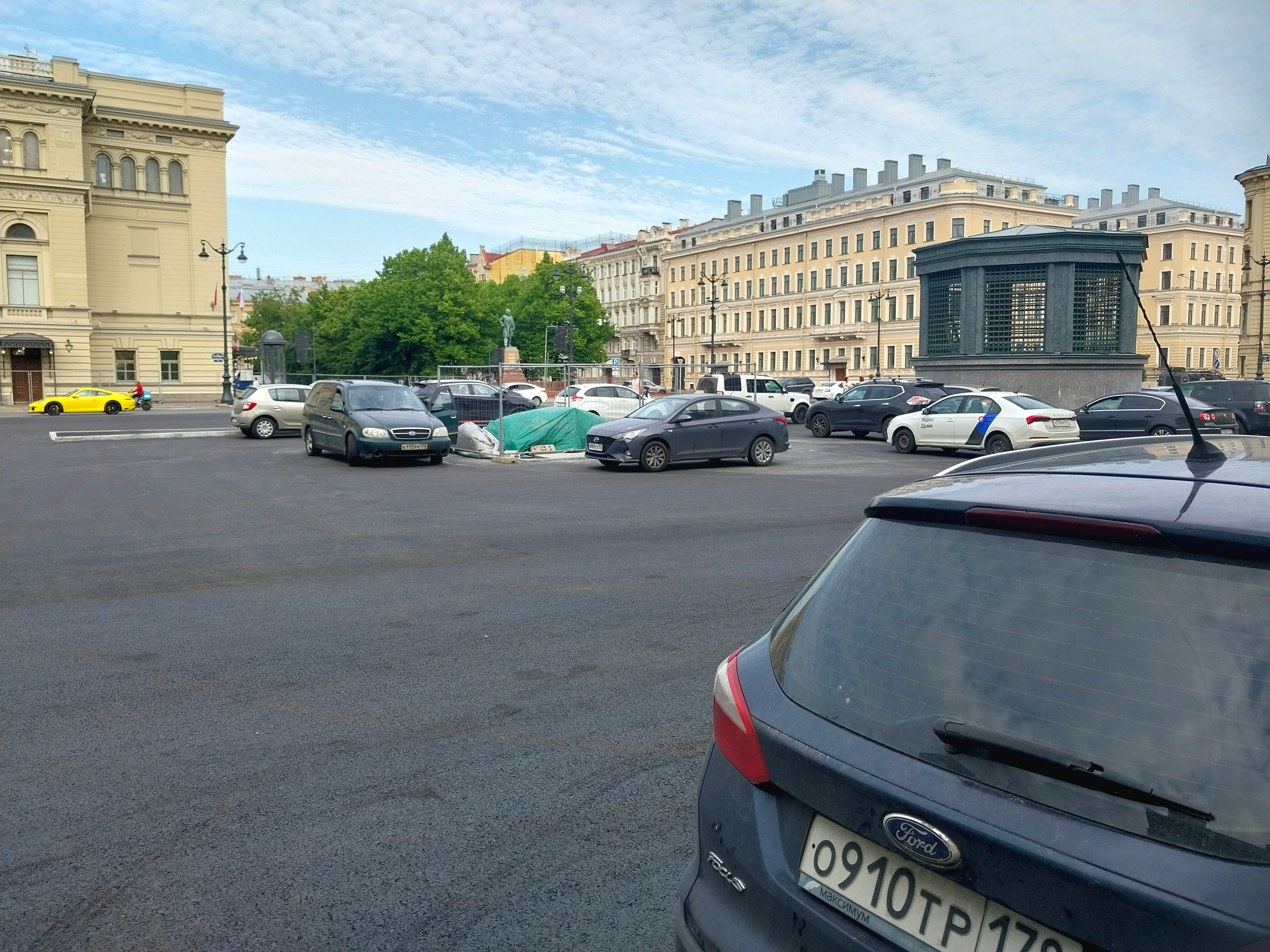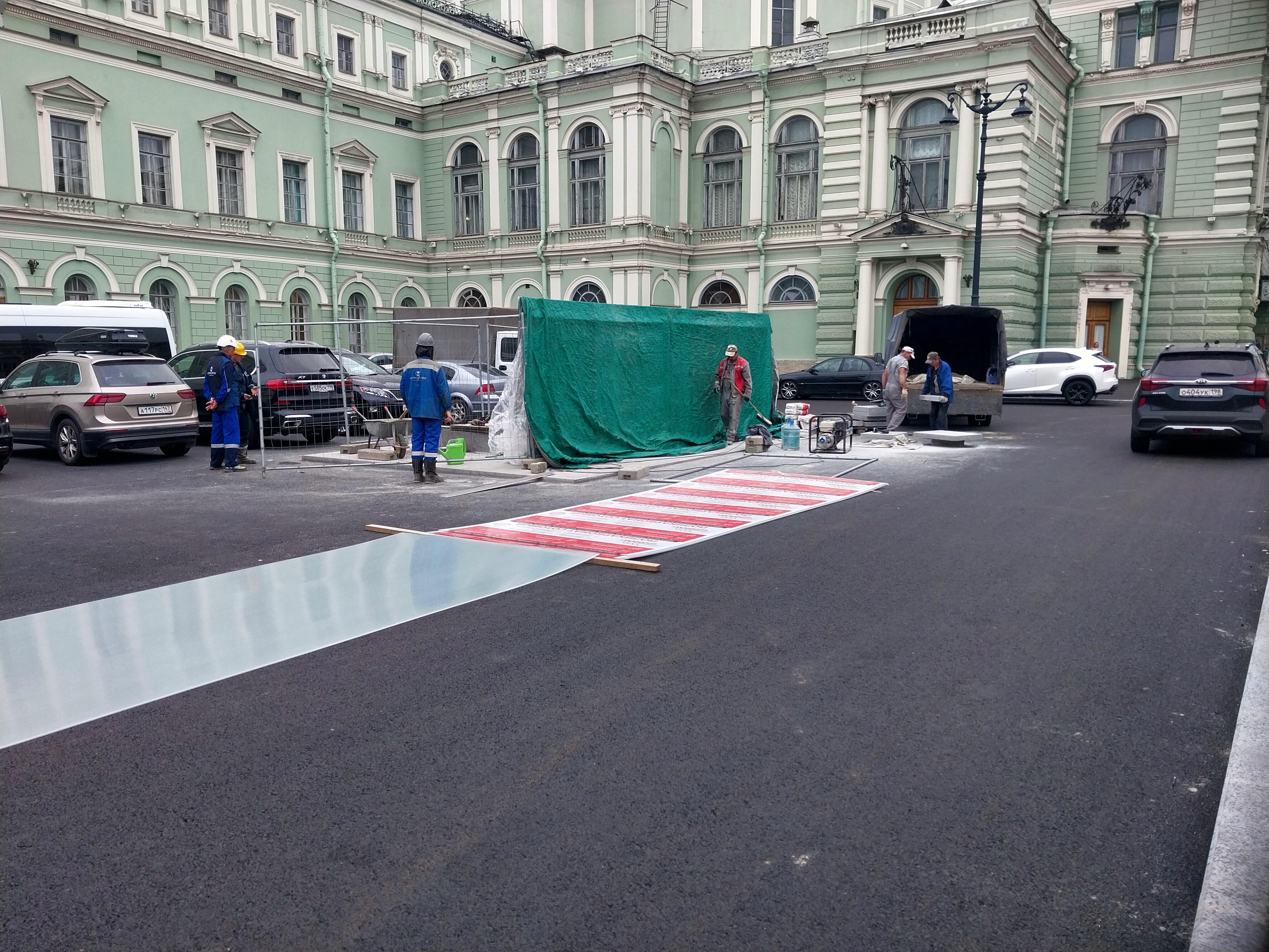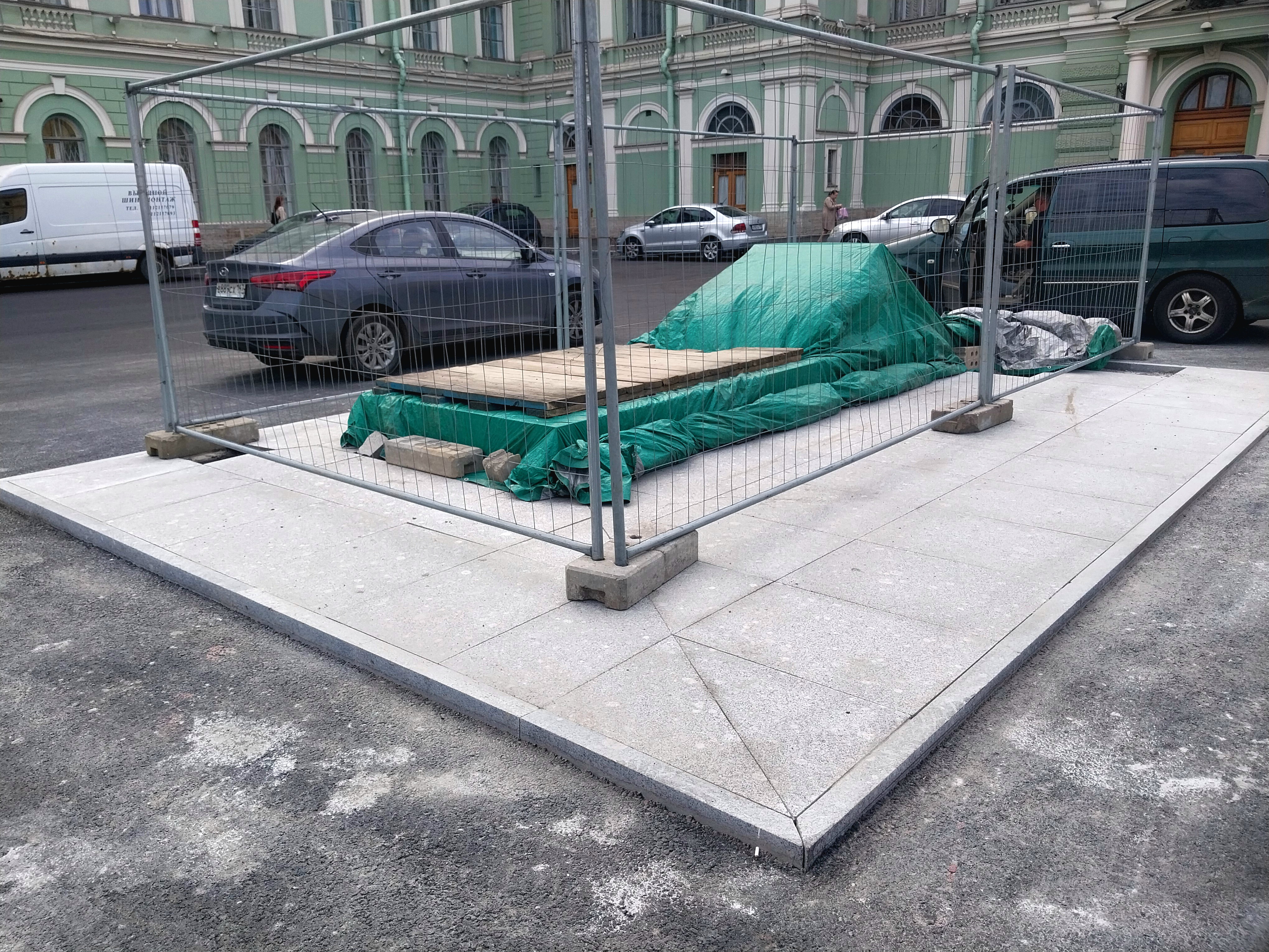 Всех поздравляю с удалением ограждений со стороны проежий части улицы Глинки и и проезда около сквера у Консерватории. Так же в связи с разрешением автомобилей парковаться на данной местности у 574 ВШ, были возведены временные перегородки вокруг эвак. выхода. Почти вся на ней напольная плитка уложена успешно.