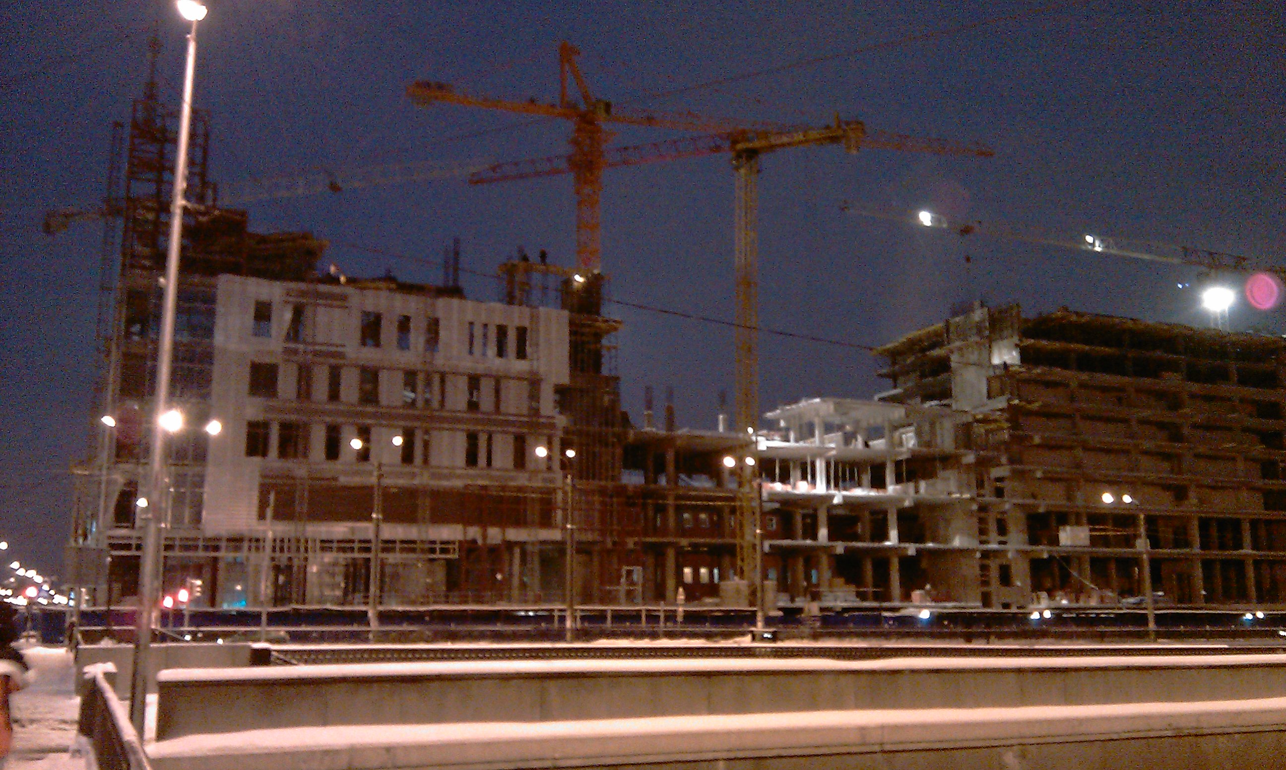 Судя по строительным лесам, а также по покраске конструкций нетрудно понять почему до сих пор нет панно. Как там одновременно можно проводить сразу две разные работы?